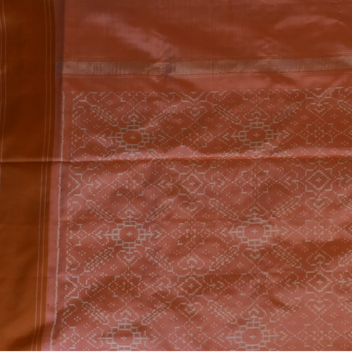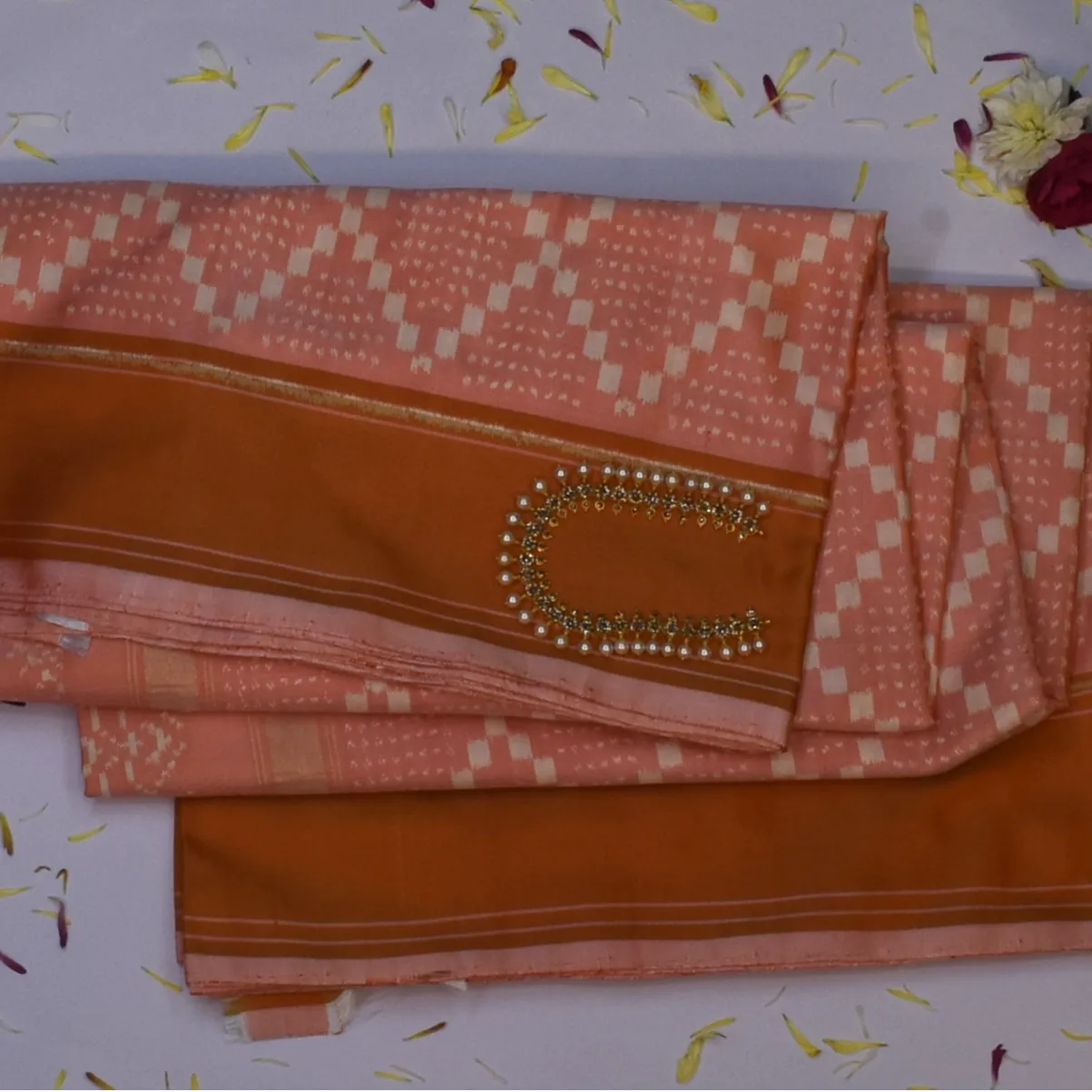 This Pochampally ikkat saree in a light orange shade is a perfect blend of tradition and elegance. Its intricate patterns make it an ideal choice for festive occasions, weddings, and cultural events.