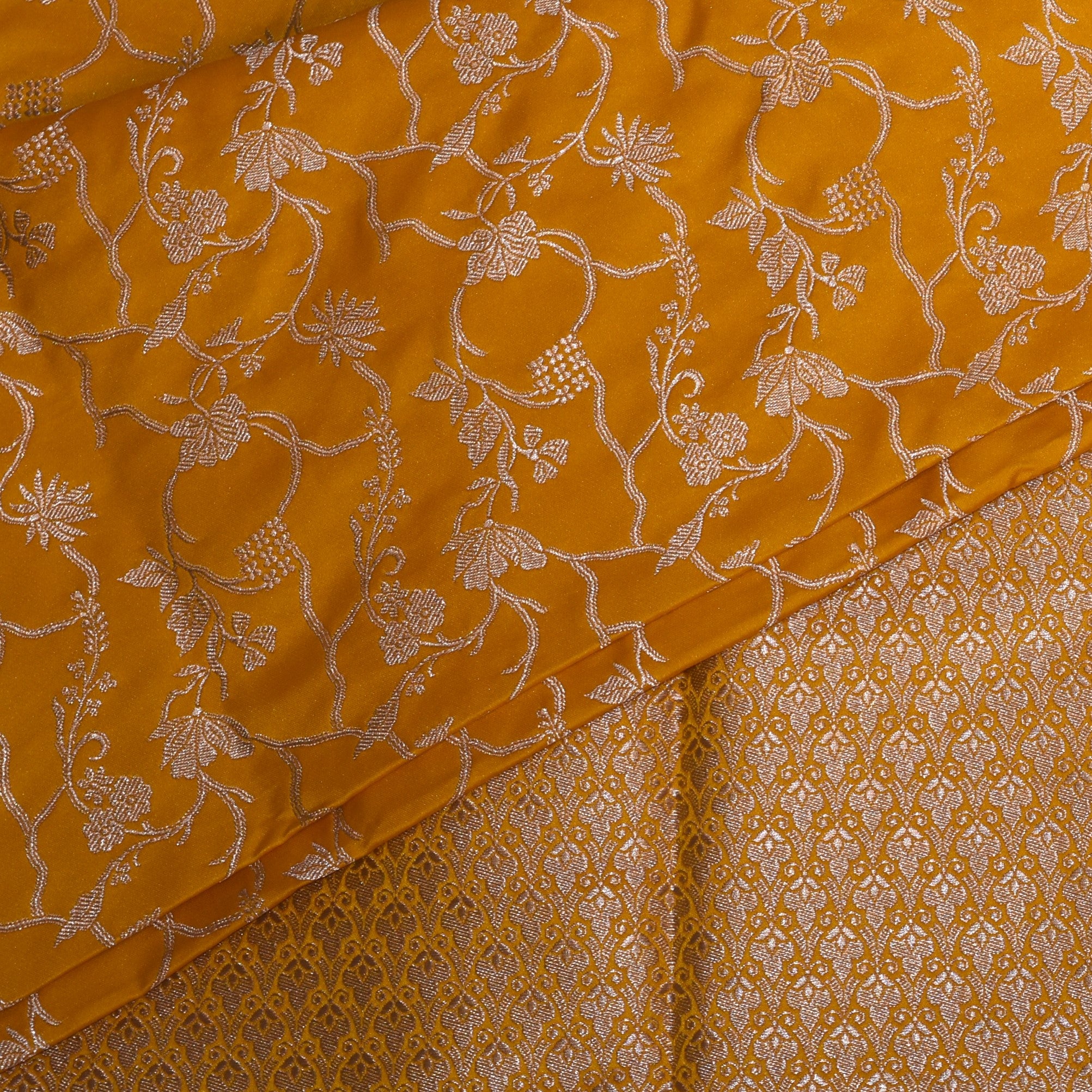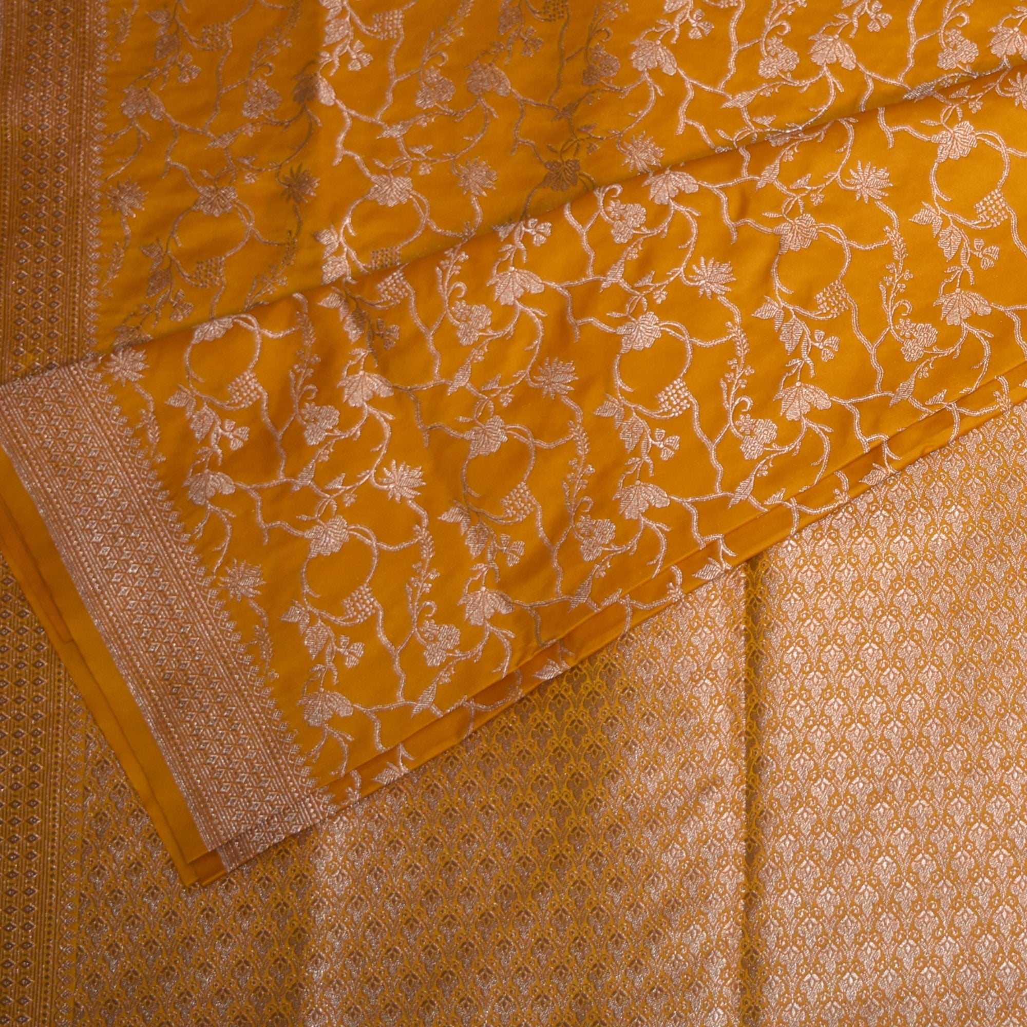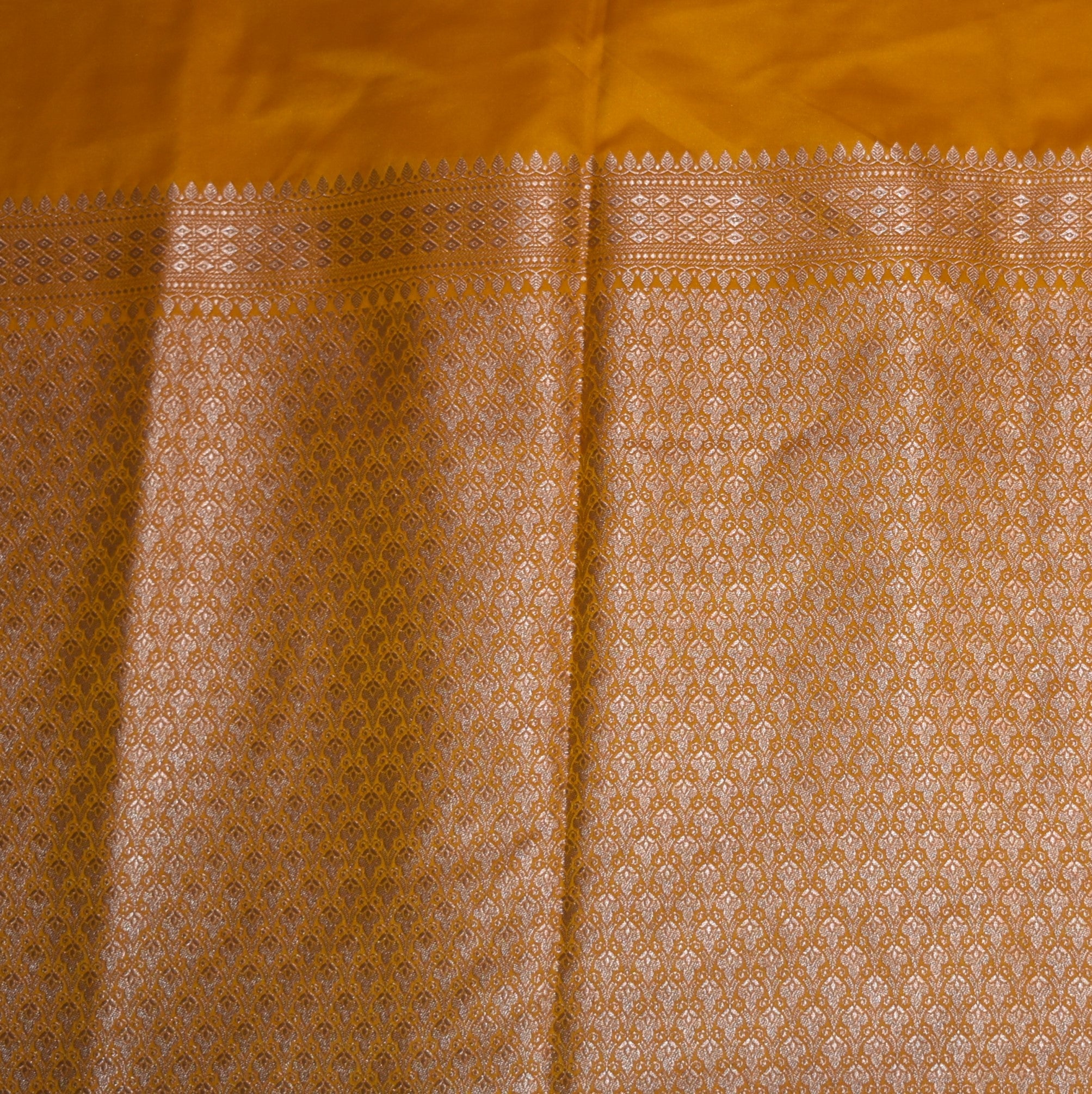 Grace your ethnic wardrobe with this elegant art silk benarasi saree in a rich yellow shade. beautifully woven with a silver jari boarder, the saree showcases intricate motifs inspired by classic Indian craftsmanship. the smoth art silk fabric offers a luxurious sheen and comfortable drape, pair it with traditional jewelry to complete a timeless and regal look
