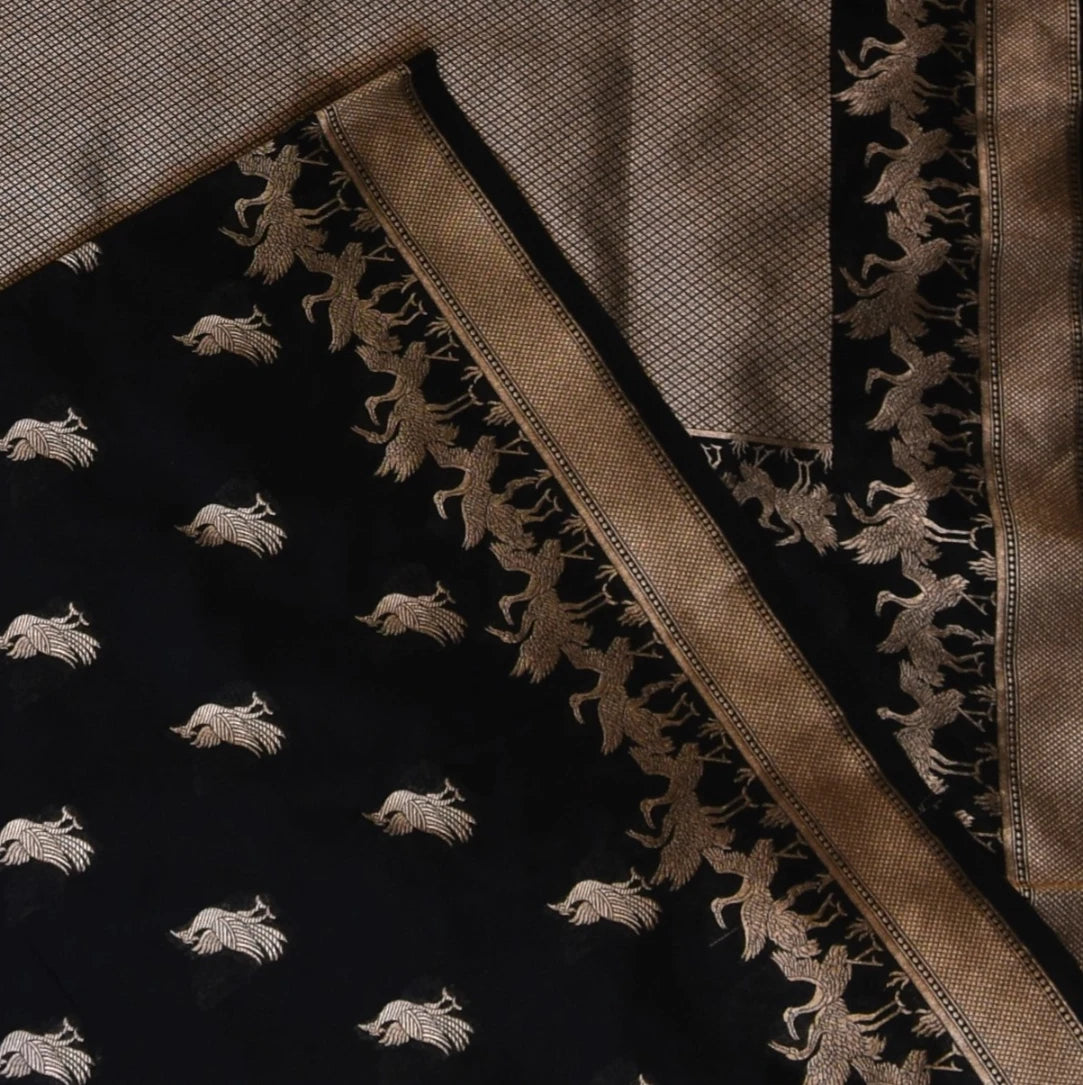 This banarasi art silk black saree jari boarder with blouse is a stunning piece with elegant details that elevate your traditional look. Perfect for celebrations, weddings, or festive wear.