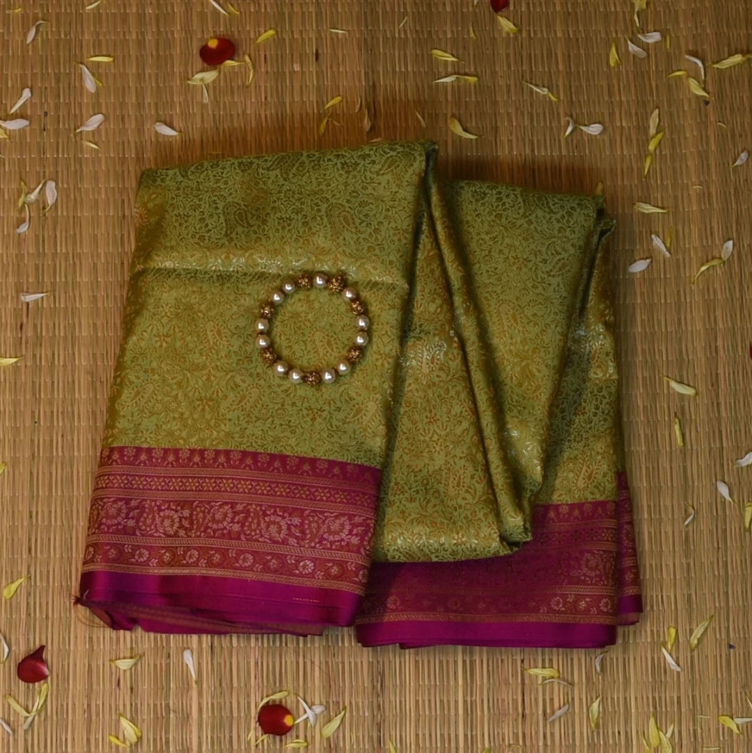 This banarasi art silk pista green saree pink thread work boarder with blouse is a stunning piece with elegant details that elevate your traditional look. Perfect for celebrations, weddings, or festive wear.