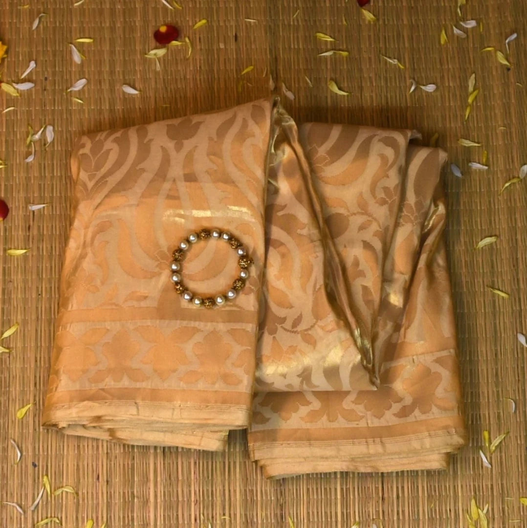 This banarasi cream saree with blouse is a stunning piece with elegant details that elevate your traditional look. Perfect for celebrations, weddings, or festive wear.