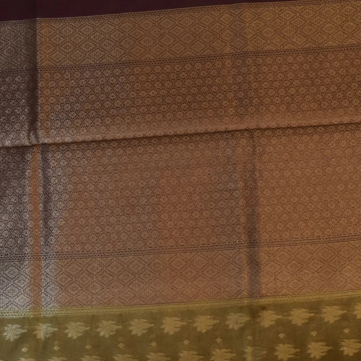 This Banarasi kora tissue saree in a amber brown shade is a perfect blend of tradition and elegance. Its intricate patterns make it an ideal choice for festive occasions, weddings, and cultural events.