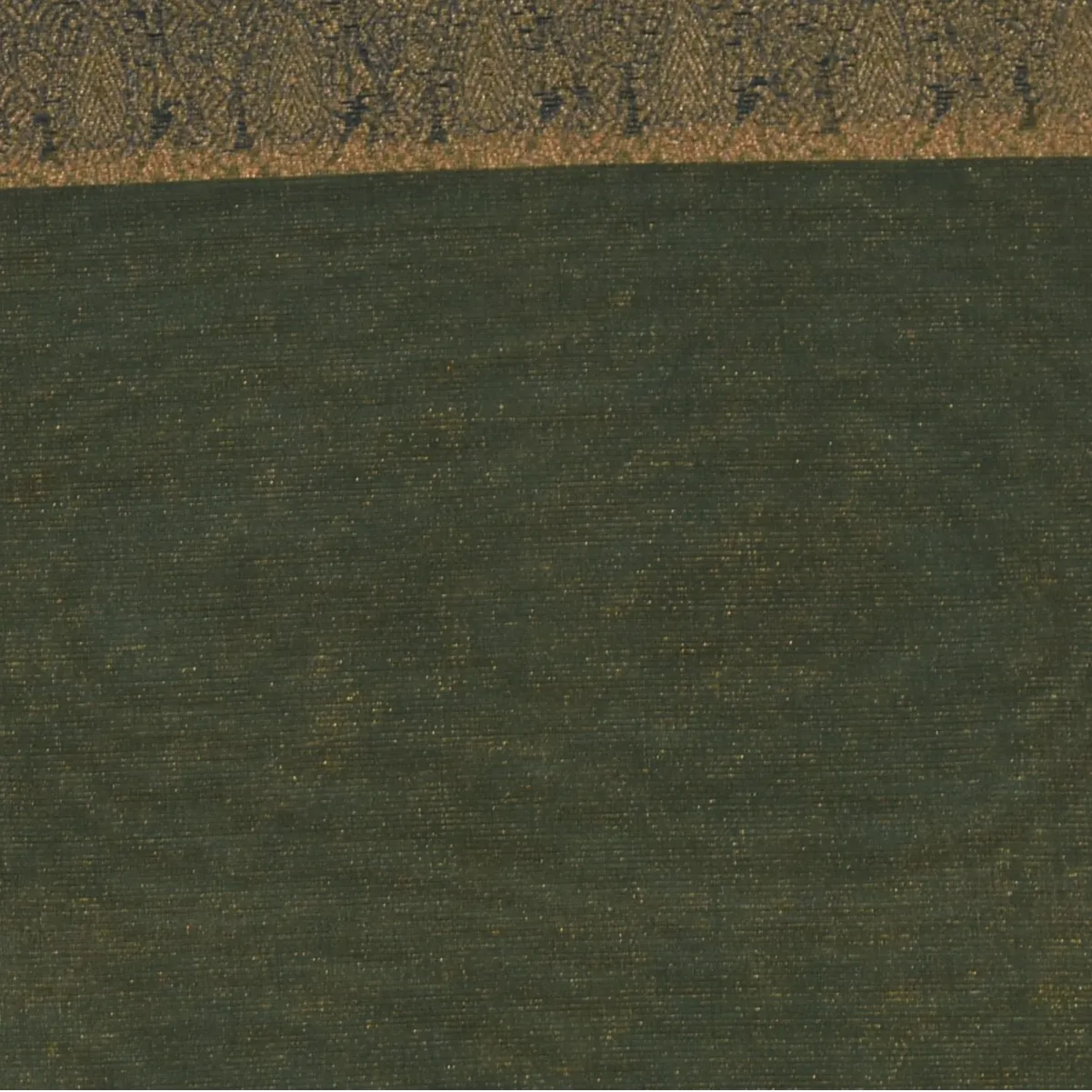 This Banarasi kora tissue saree in a olive green shade is a perfect blend of tradition and elegance. Its intricate patterns make it an ideal choice for festive occasions, weddings, and cultural events.