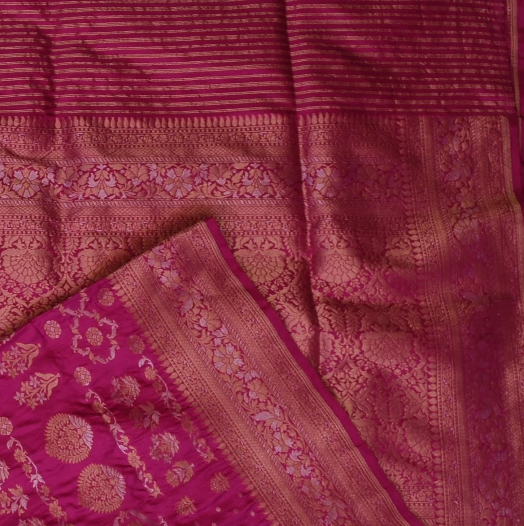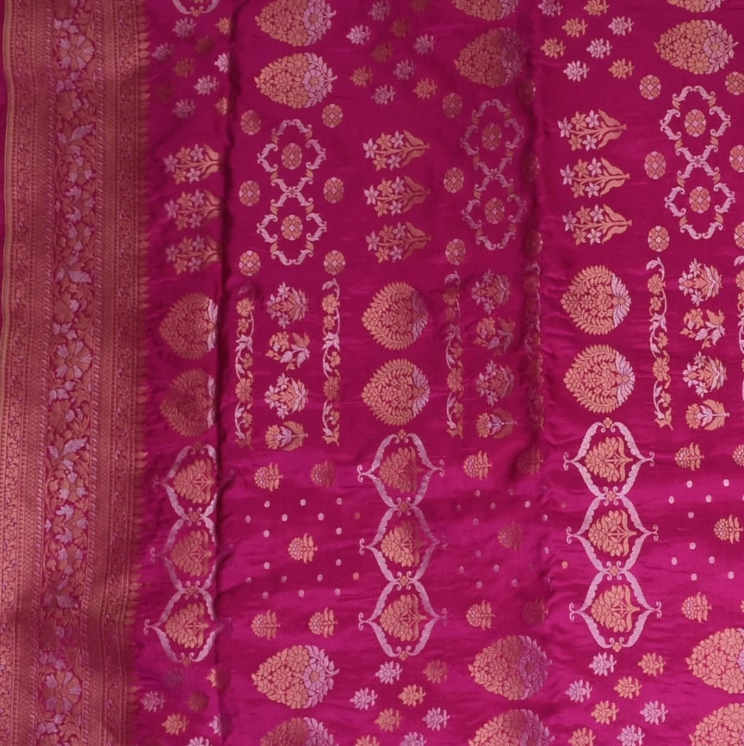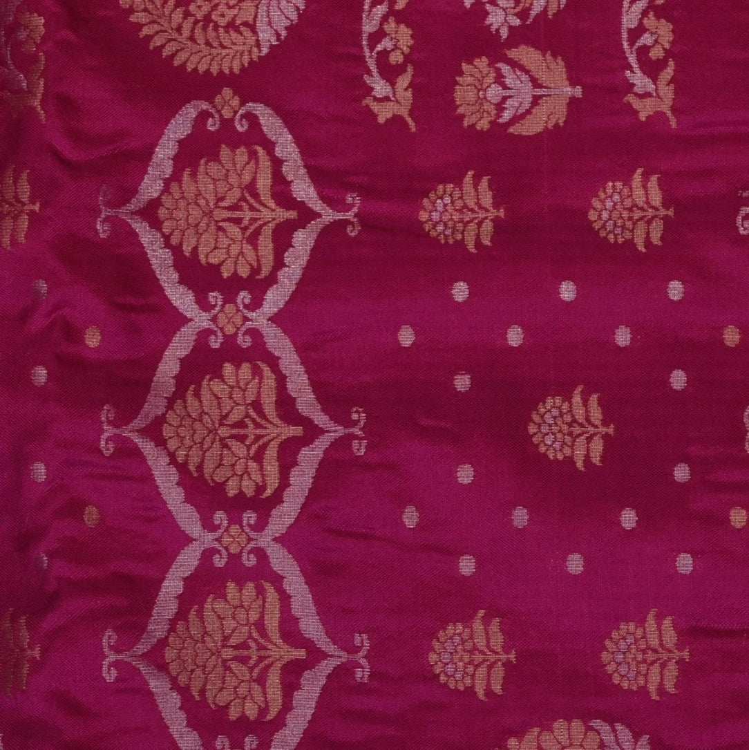 This banarasi pink saree with jari boarder with blouse is a stunning piece with elegant details that elevate your traditional look. Perfect for celebrations, weddings, or festive wear.