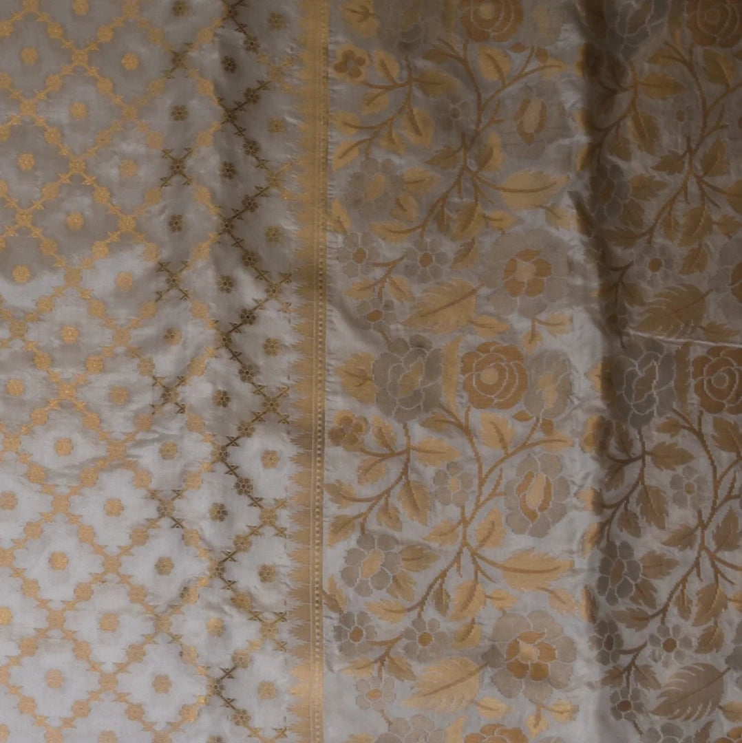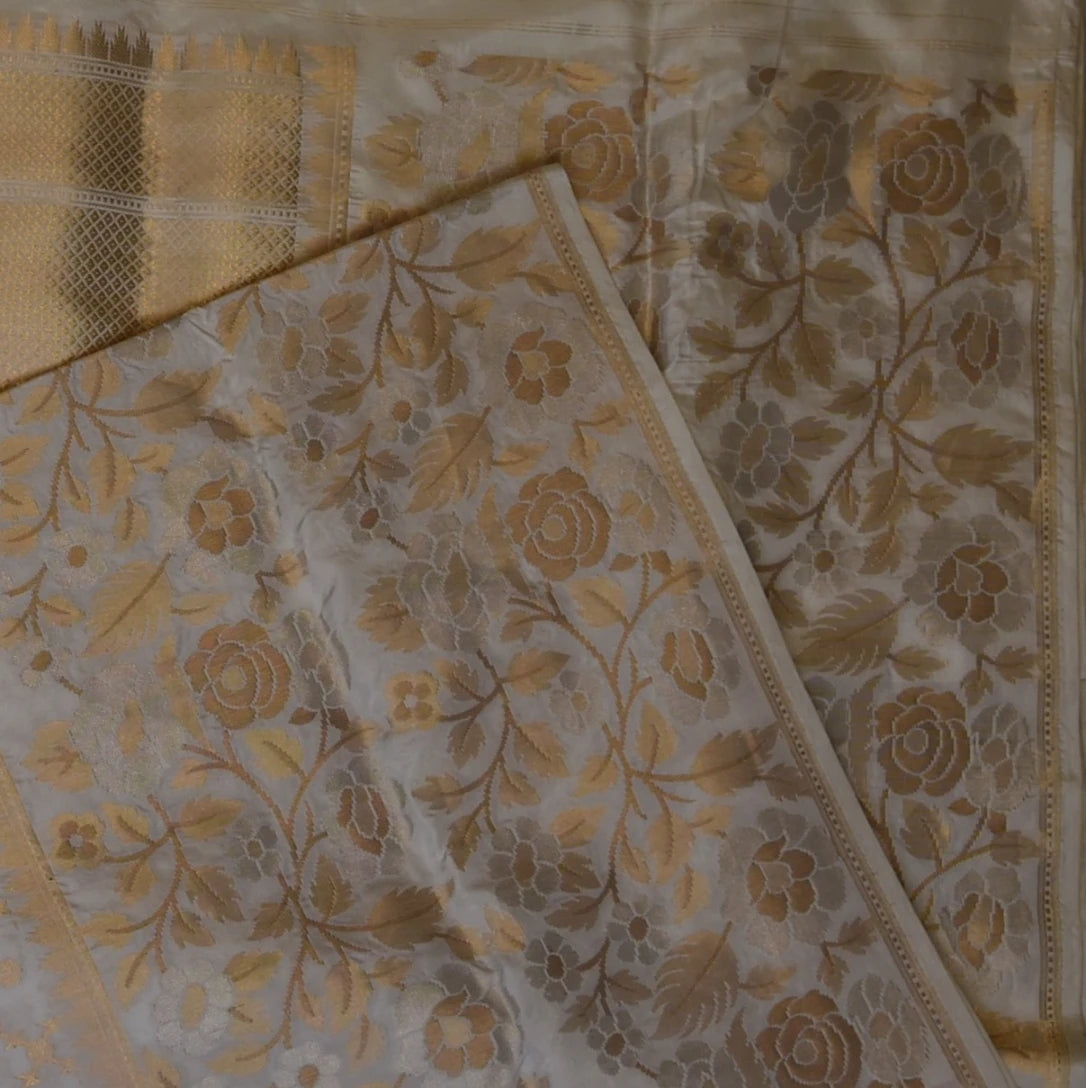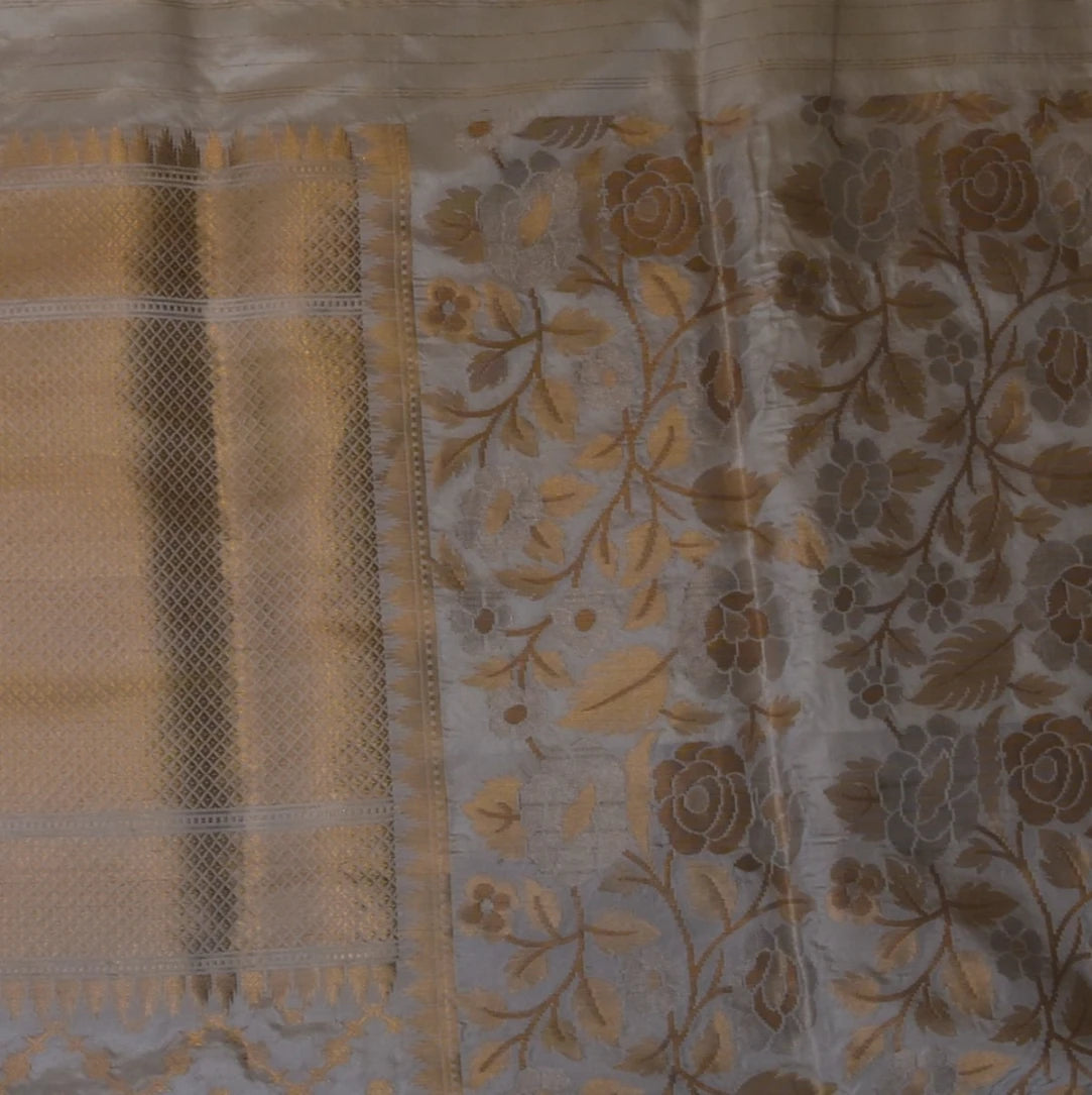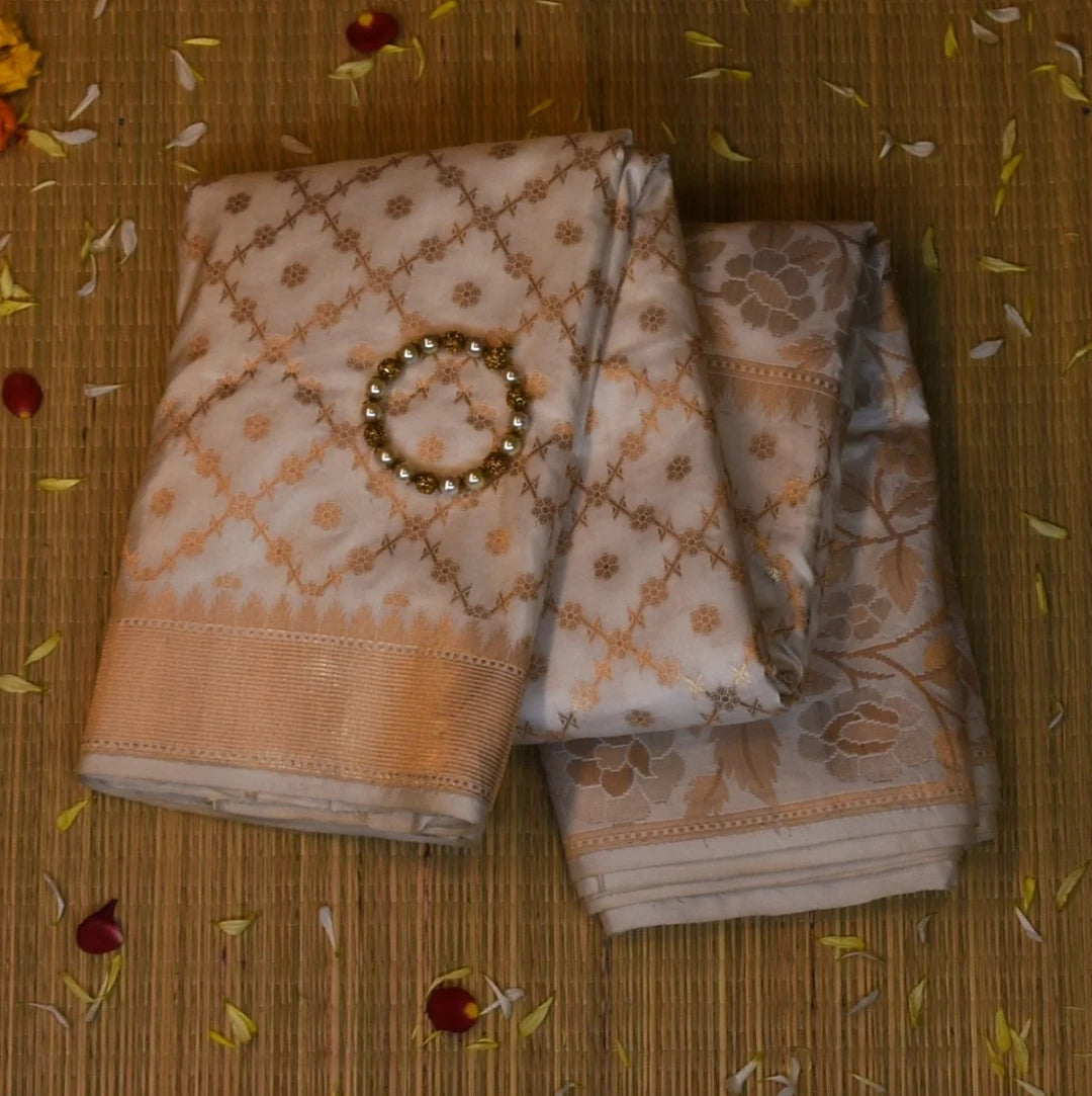 This banarasi pure white jari boarder with blouse is a stunning piece with elegant details that elevate your traditional look. Perfect for celebrations, weddings, or festive wear.