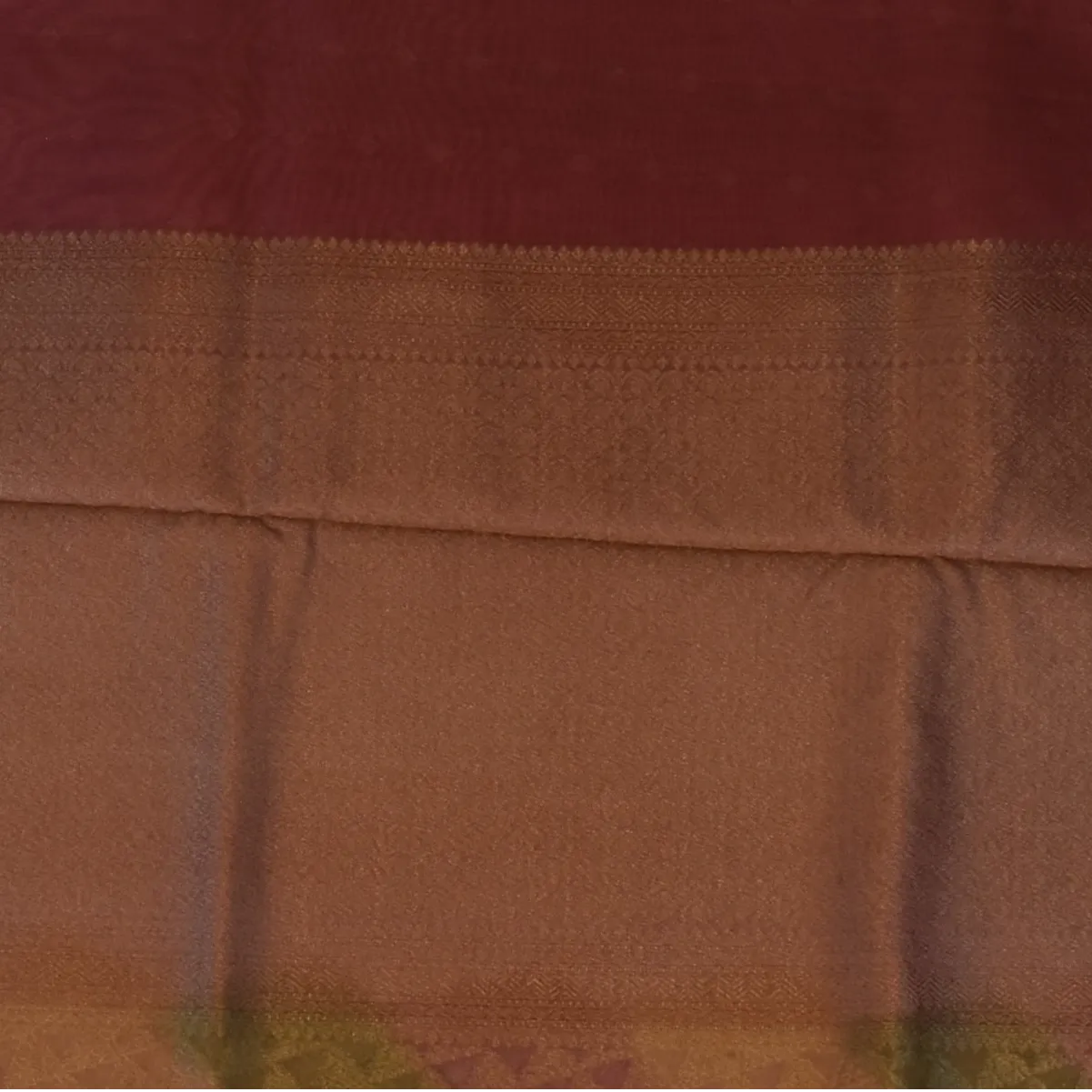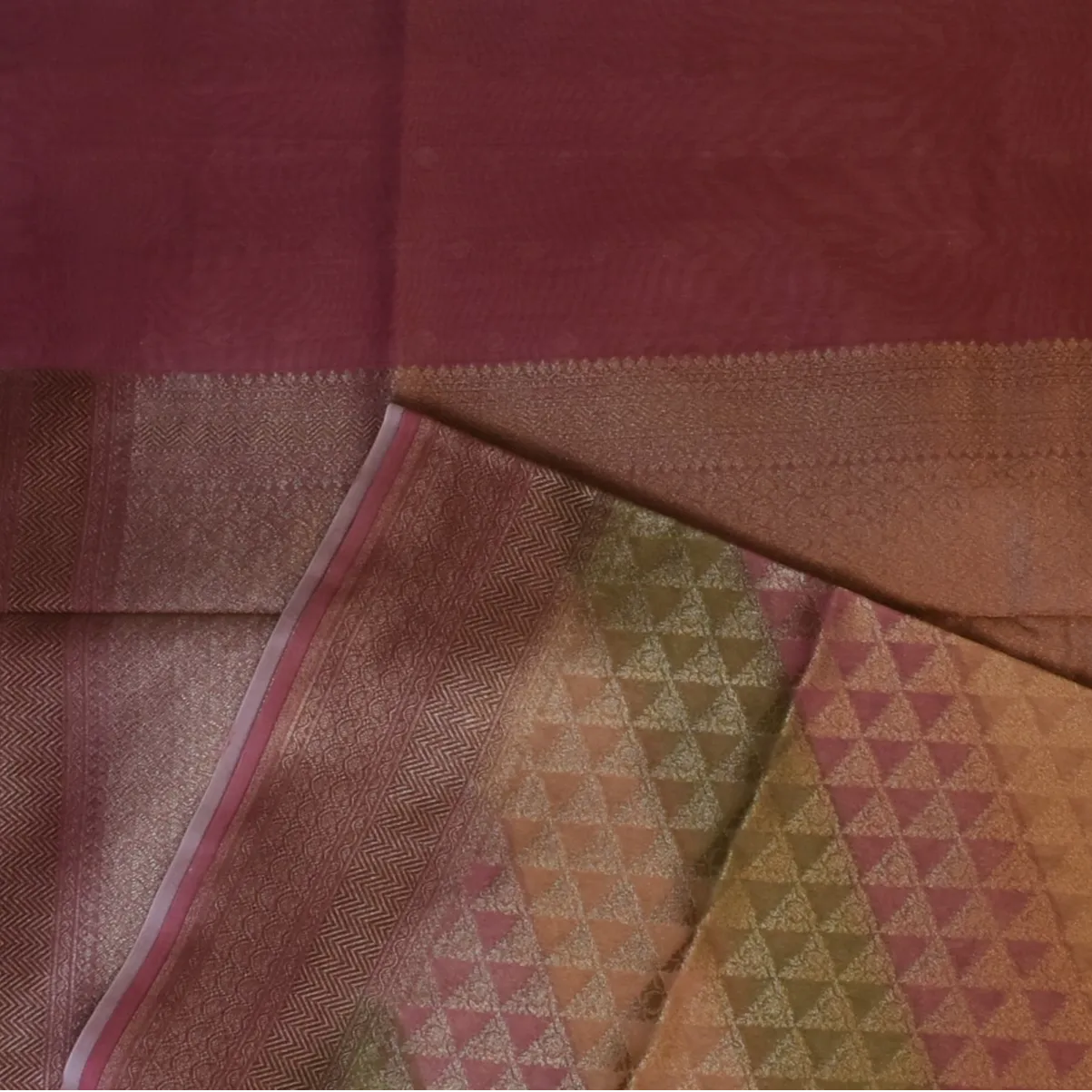 This Banarasi Rangkat Cotton saree in a camel brown shade is a perfect blend of tradition and elegance. Its intricate patterns make it an ideal choice for festive occasions, weddings, and cultural events.