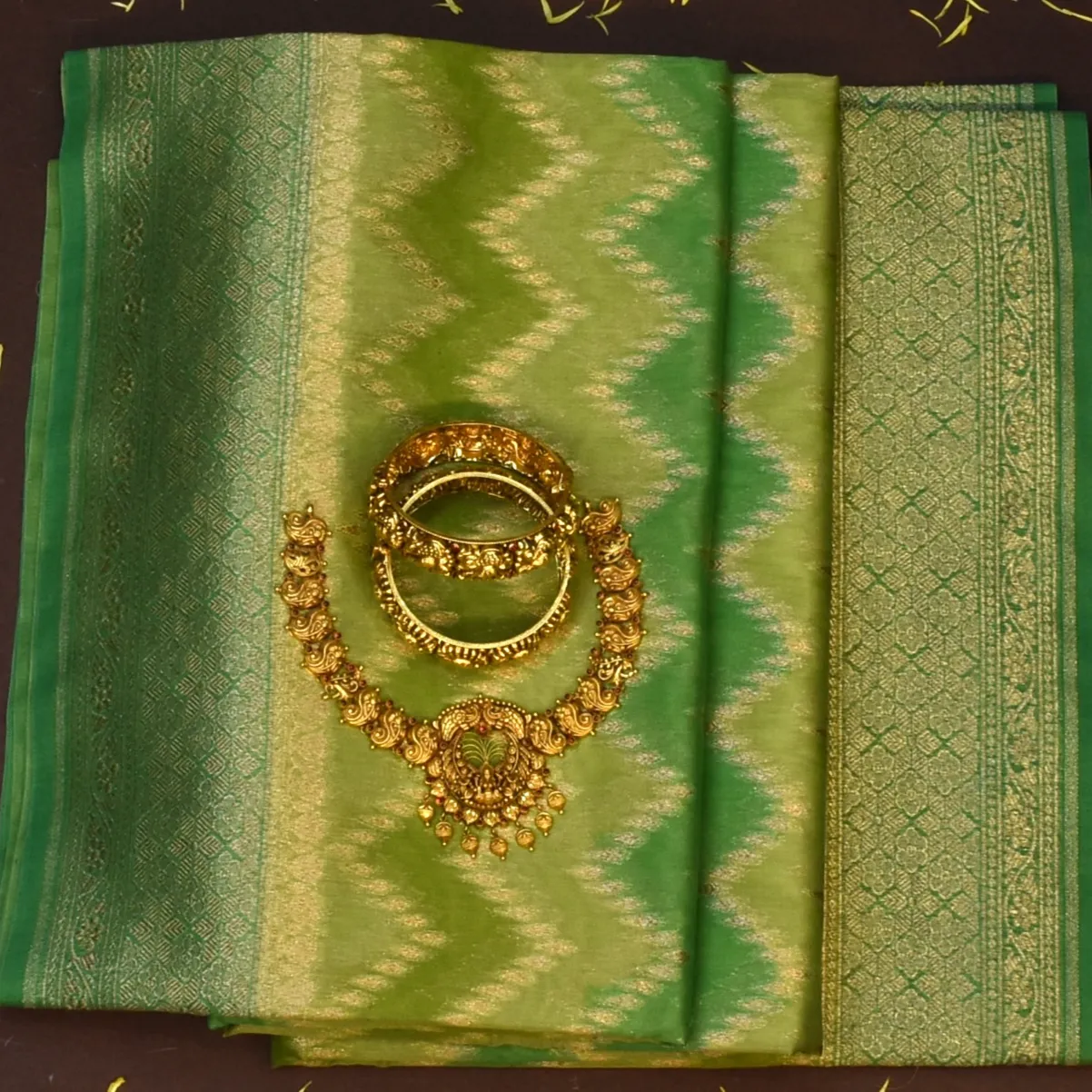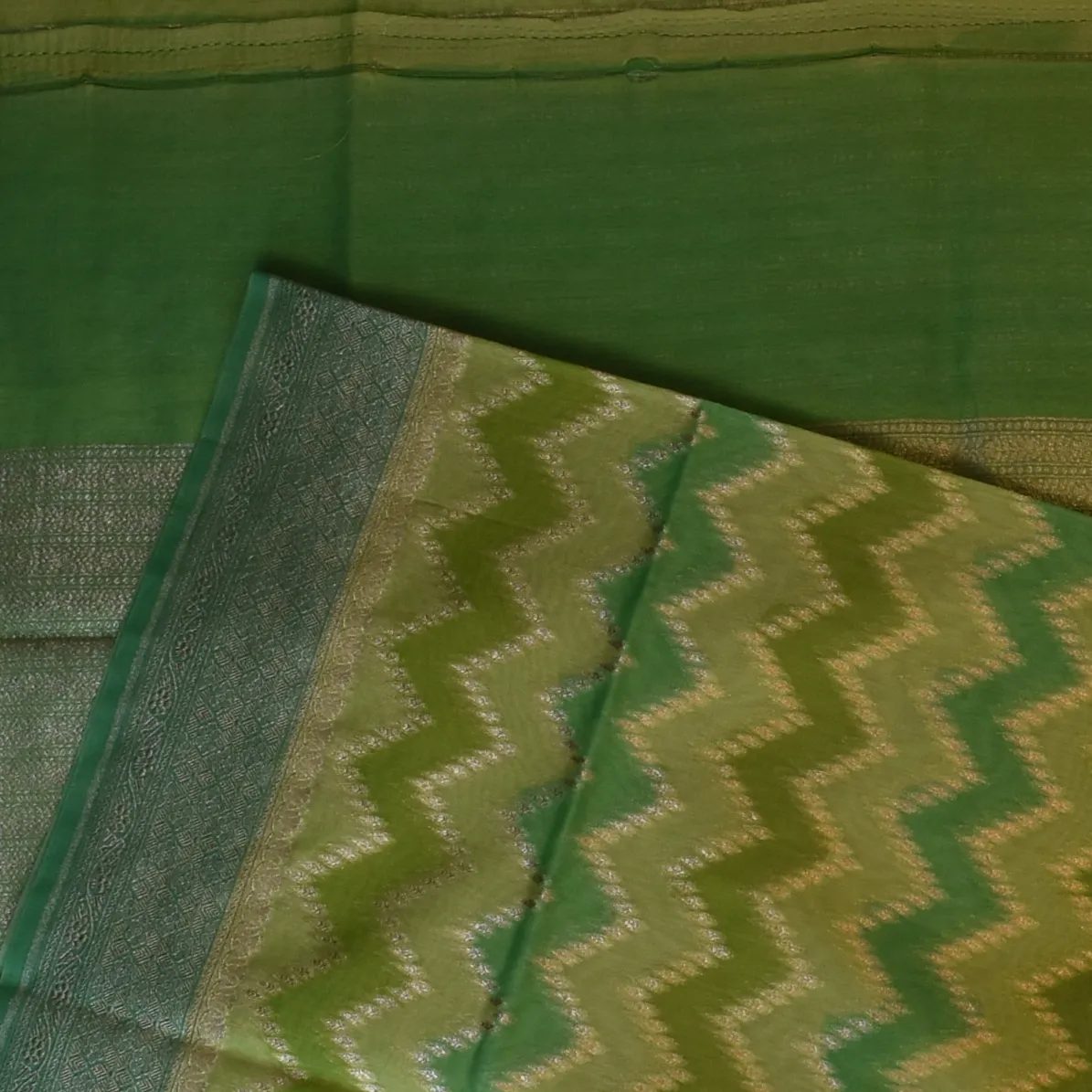 This Banarasi Rangkat Cotton saree in a fern green shade is a perfect blend of tradition and elegance. Its intricate patterns make it an ideal choice for festive occasions, weddings, and cultural events.