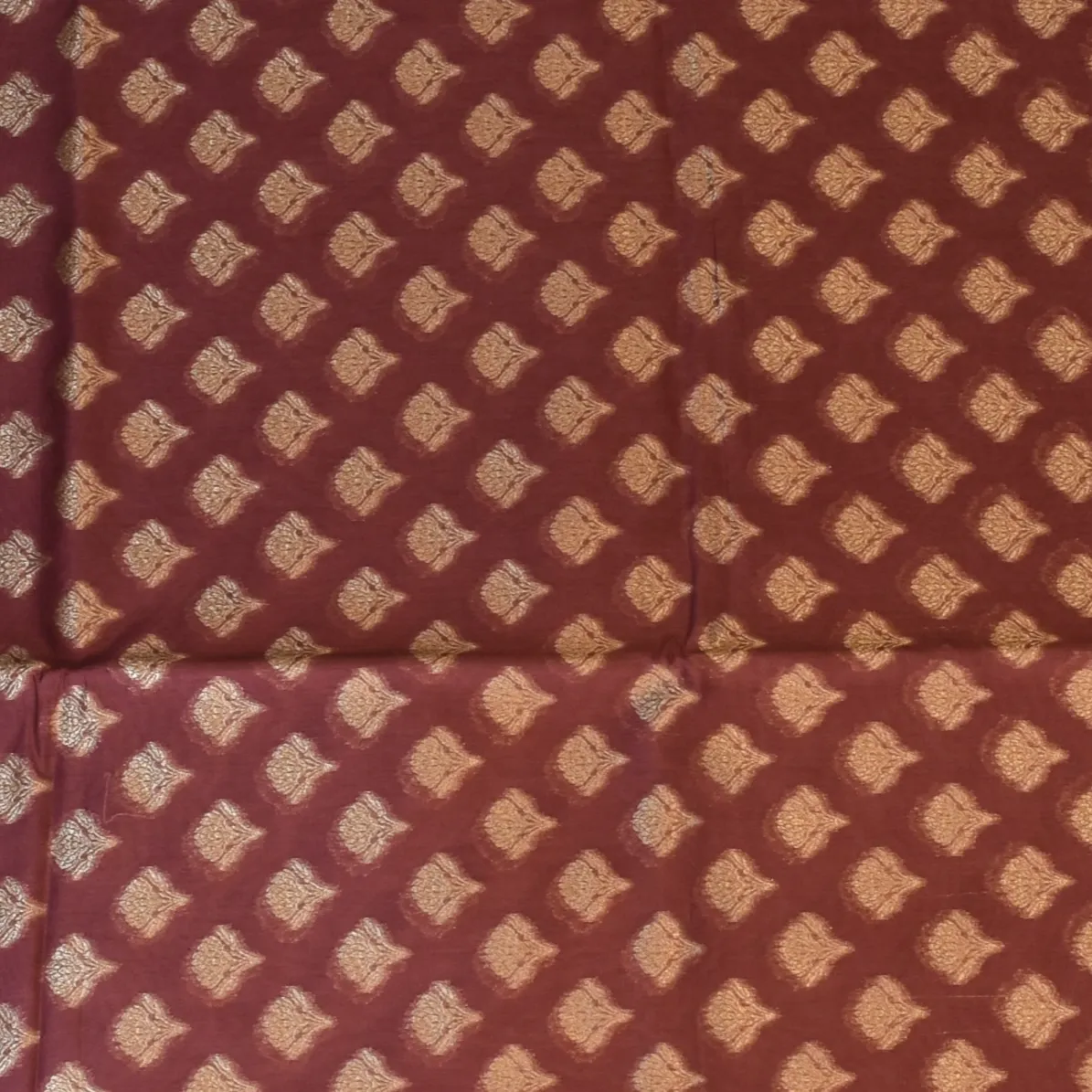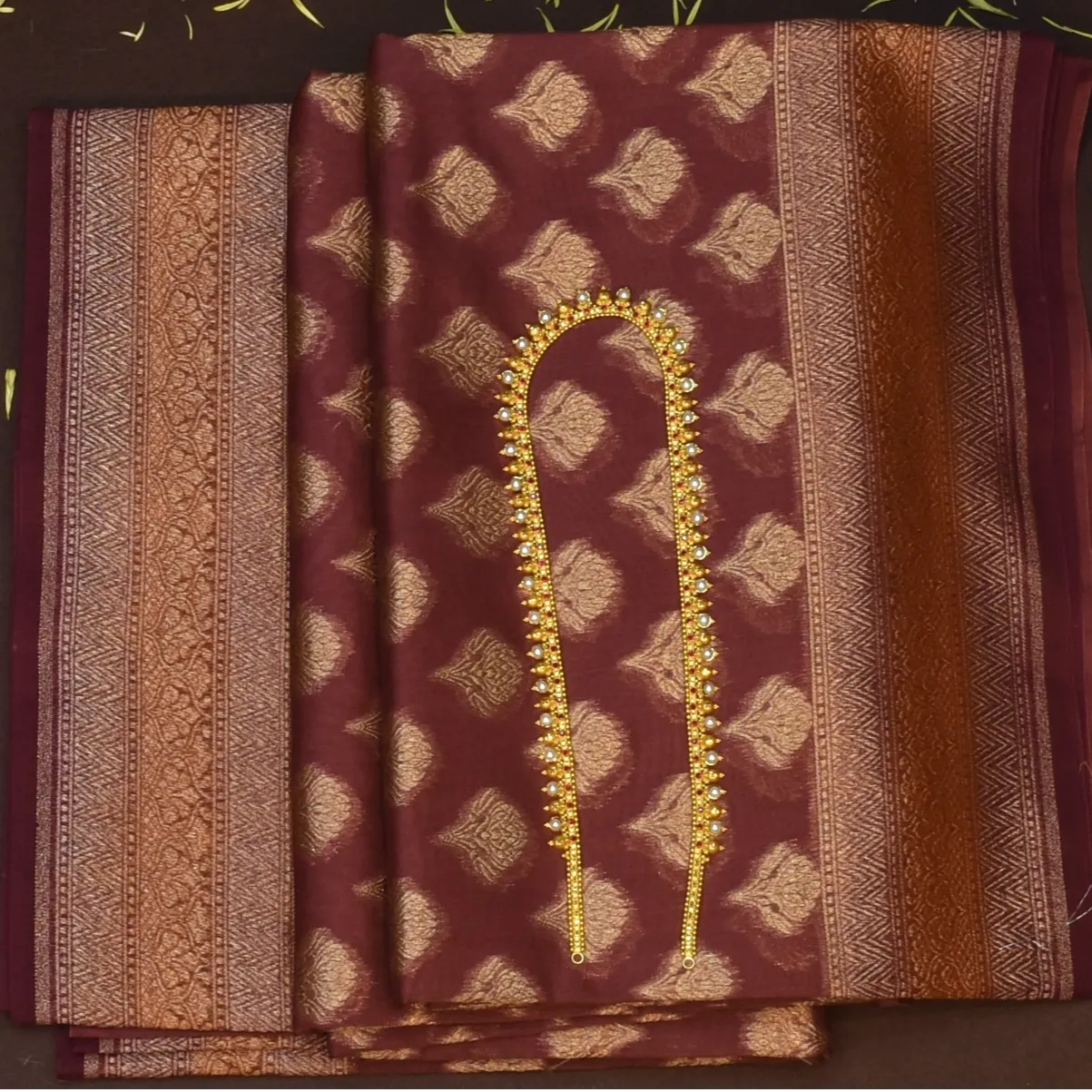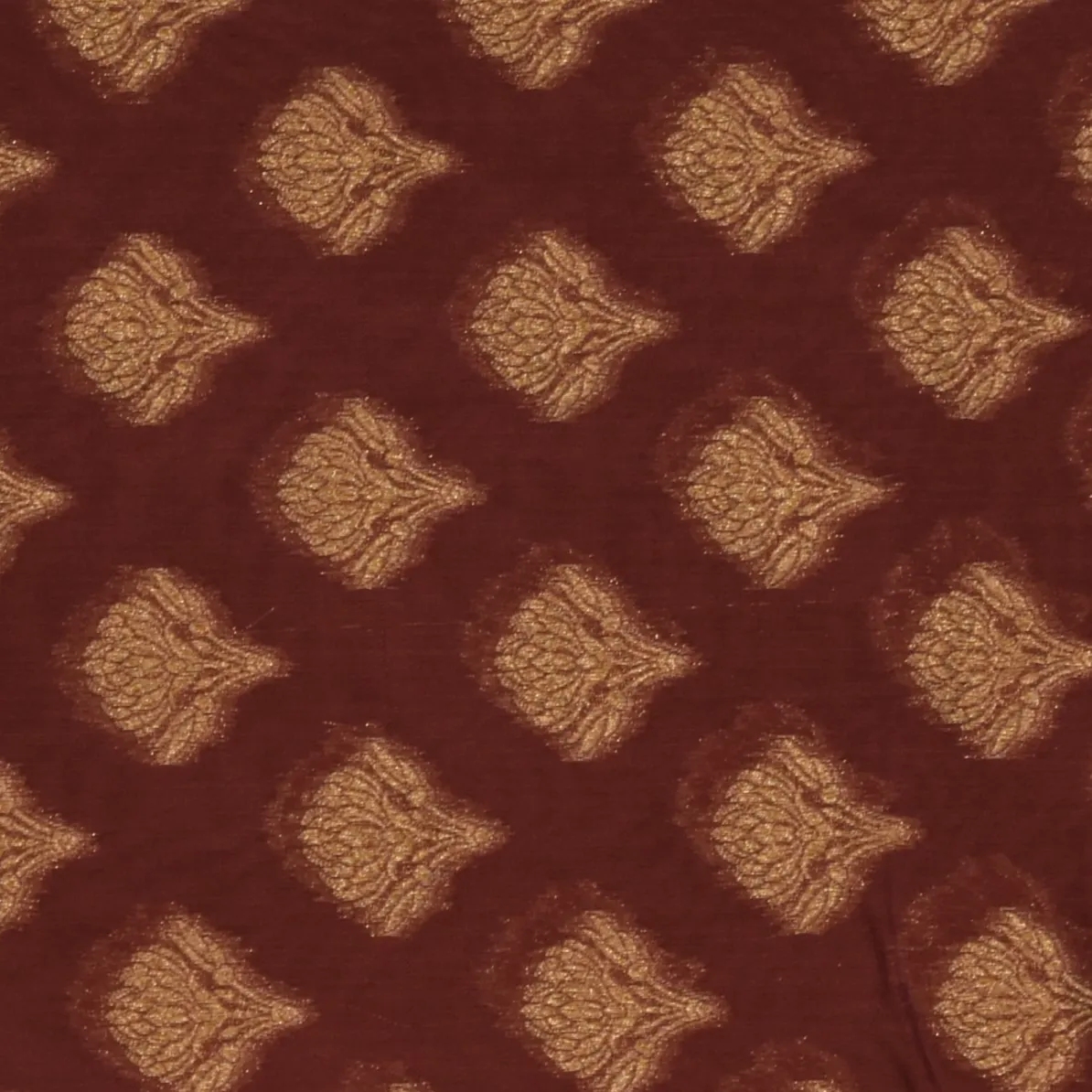 This Banarasi Rangkat Cotton saree in a mahogany shade is a perfect blend of tradition and elegance. Its intricate patterns make it an ideal choice for festive occasions, weddings, and cultural events.