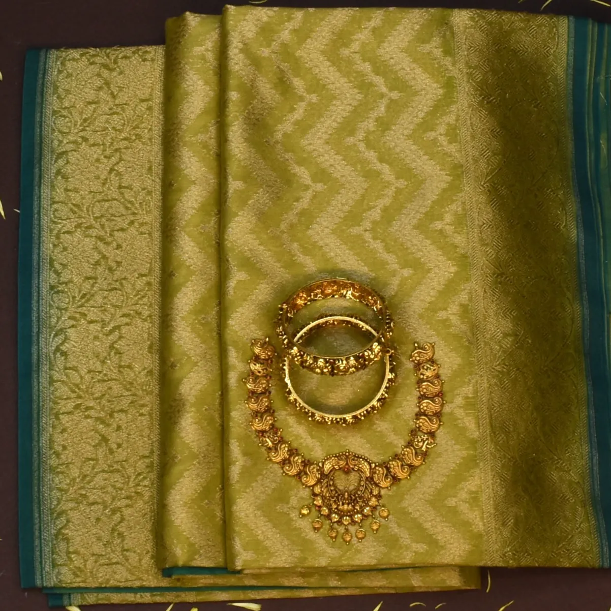 This Banarasi Rangkat Cotton saree in a mustard yellow shade is a perfect blend of tradition and elegance. Its intricate patterns make it an ideal choice for festive occasions, weddings, and cultural events.