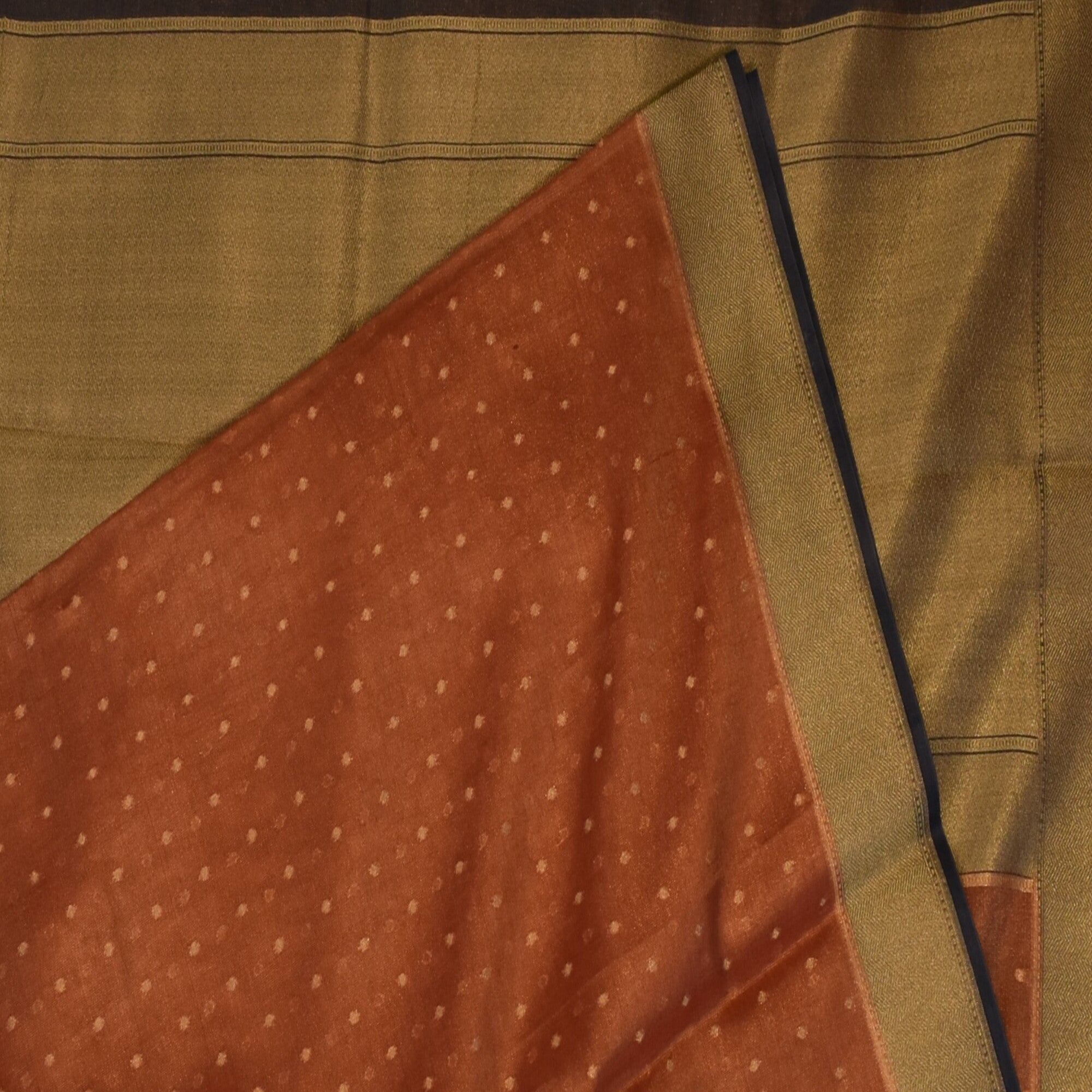 The cora tissue brick red saree with jari boarder. Exquisite and timeless, this benarasi cora tissue silk saree is a perfect blend of traditional artistry and modern eligence, crafted from premium silk, it drapes gracefully, offering a soft, fluid fall that flatters every silhouette. Pair it with a complementing silk blouse and traditional jewellery to complete your royal ethnic look.