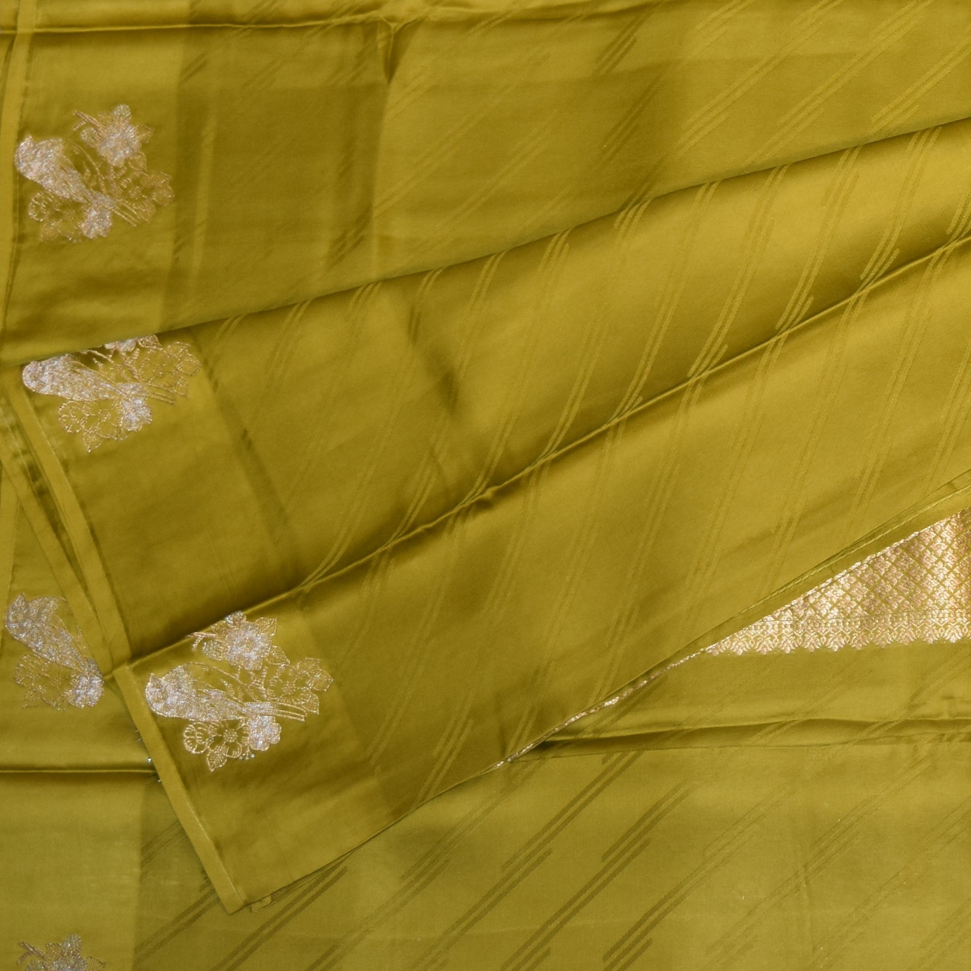 Benarasi Crepe Silk pear green saree with jari motifs