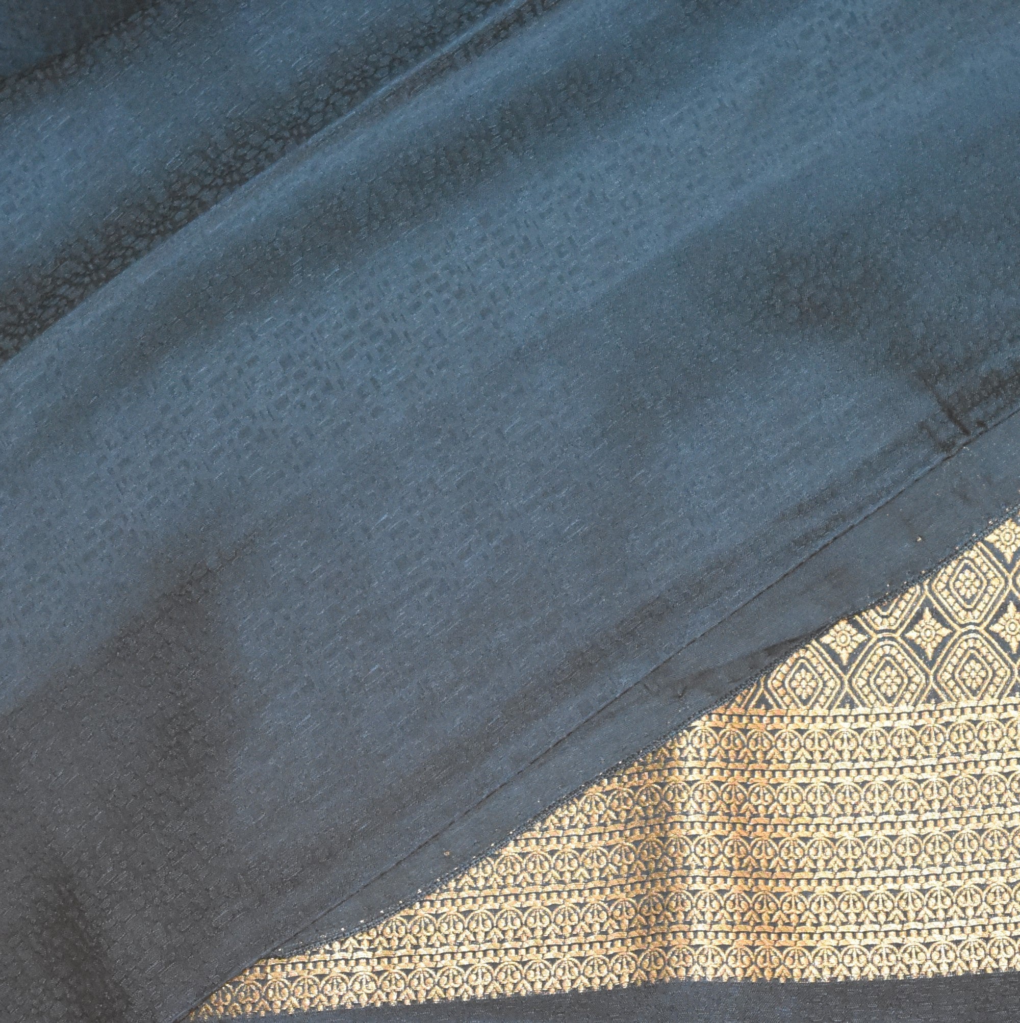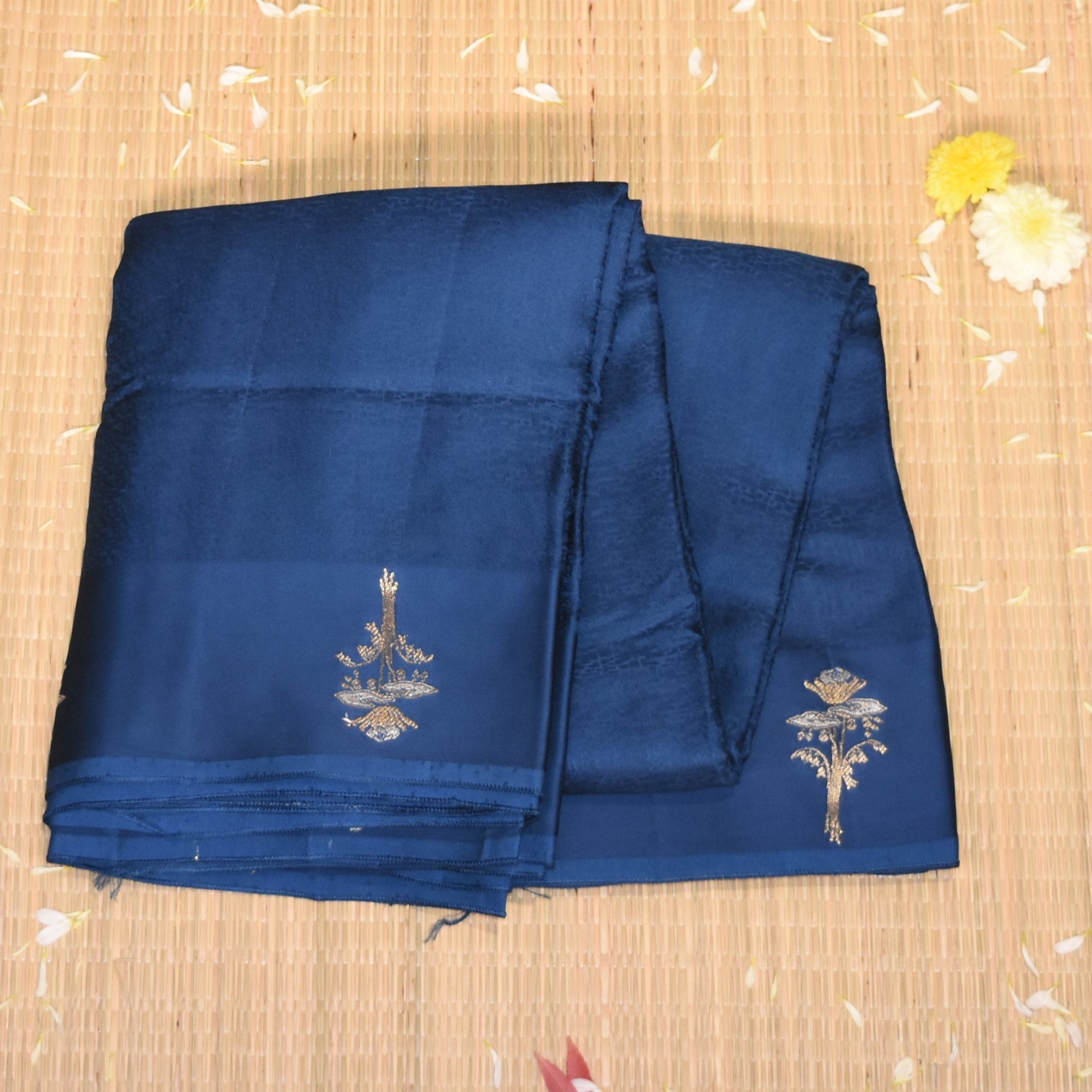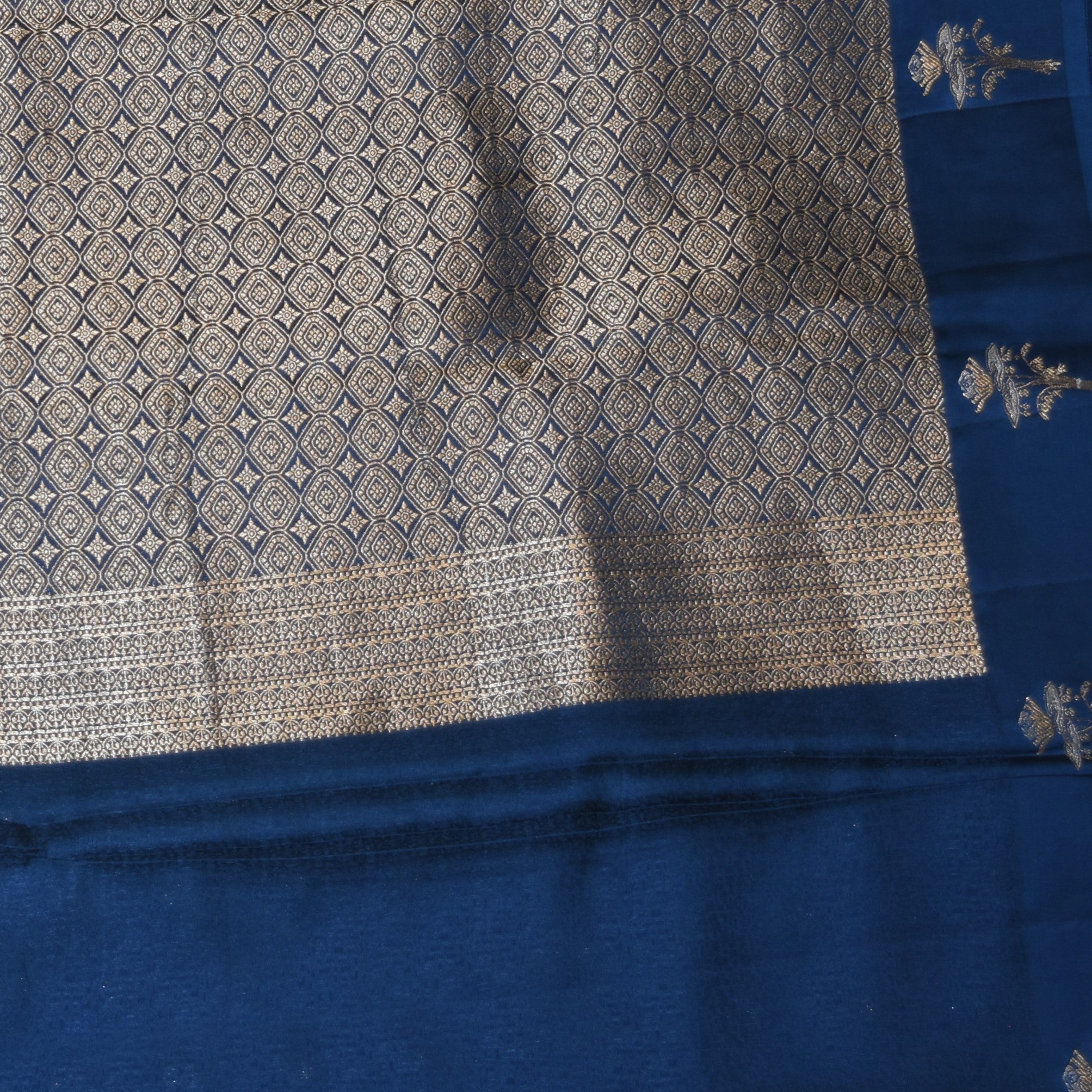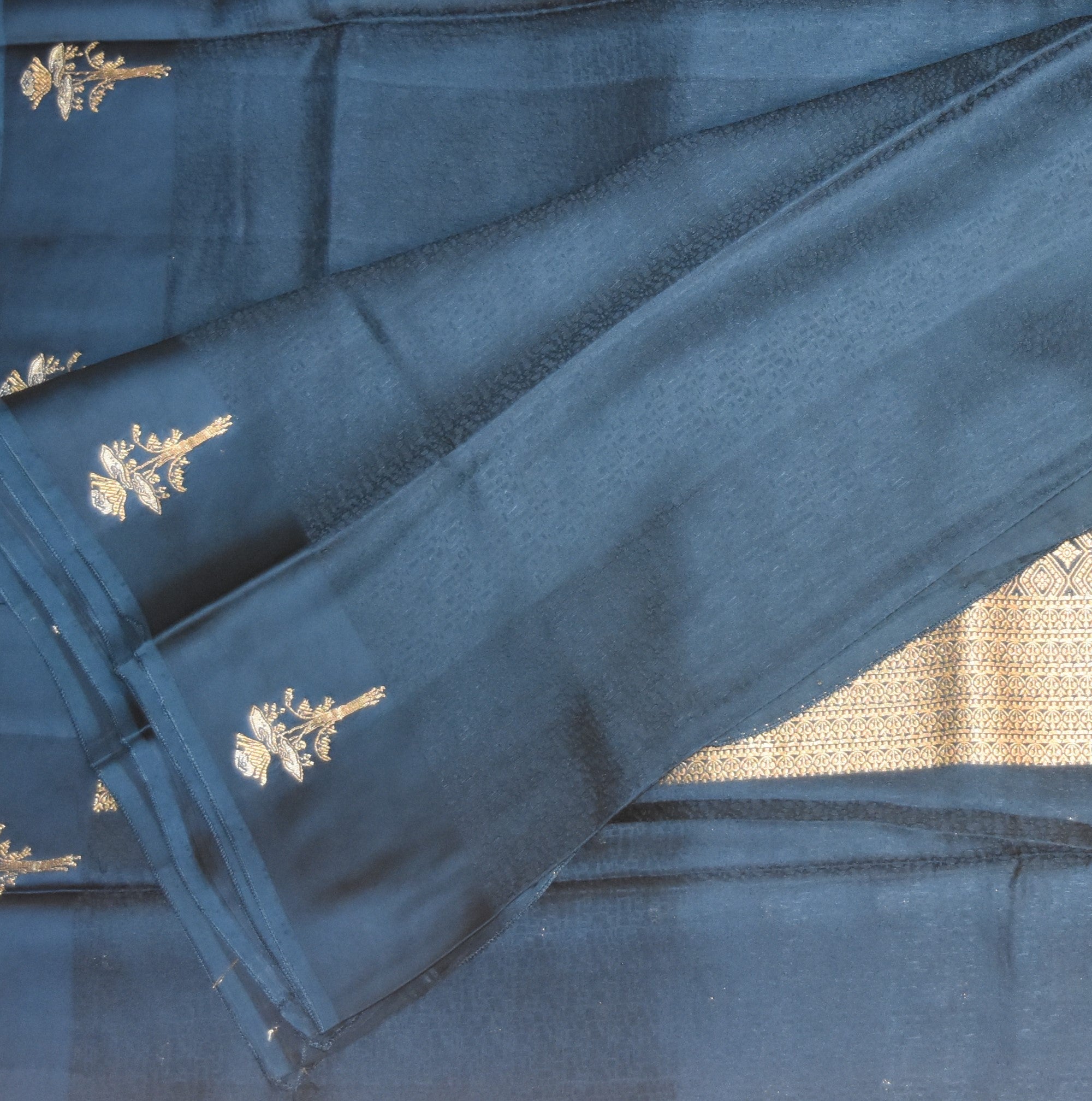 Benarasi Crepe Silk pigeon blue with flower motifs