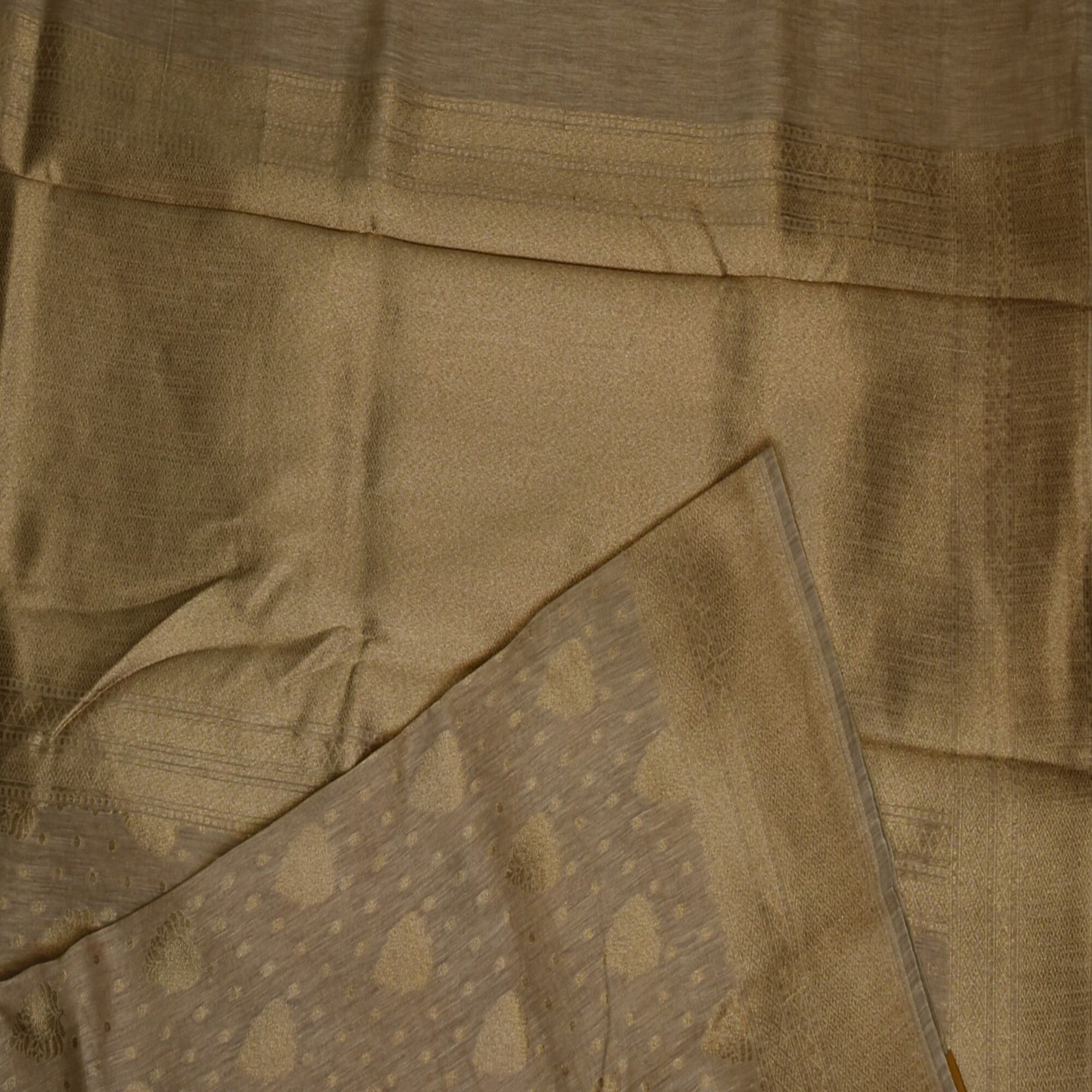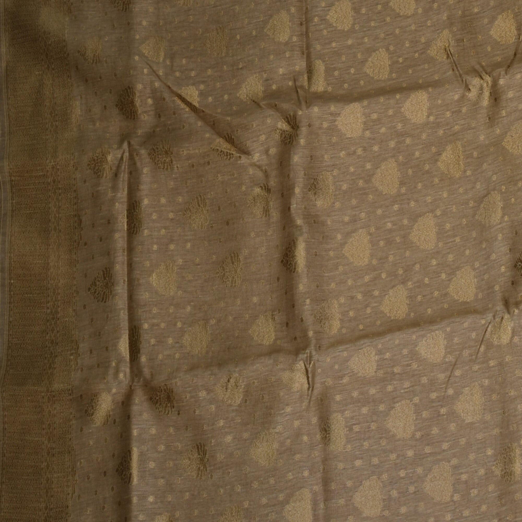 The khadi saree with gold jari boarder. Exquisite and timeless, this benarasi crepe silk saree is a perfect blend of traditional artistry and modern eligence, crafted from premium crepe silk, it drapes gracefully, offering a soft,  fluid fall that flatters every silhouette. Pair it with a complementing silk blouse and traditonal jewellery to complete your  royal ethnic look.