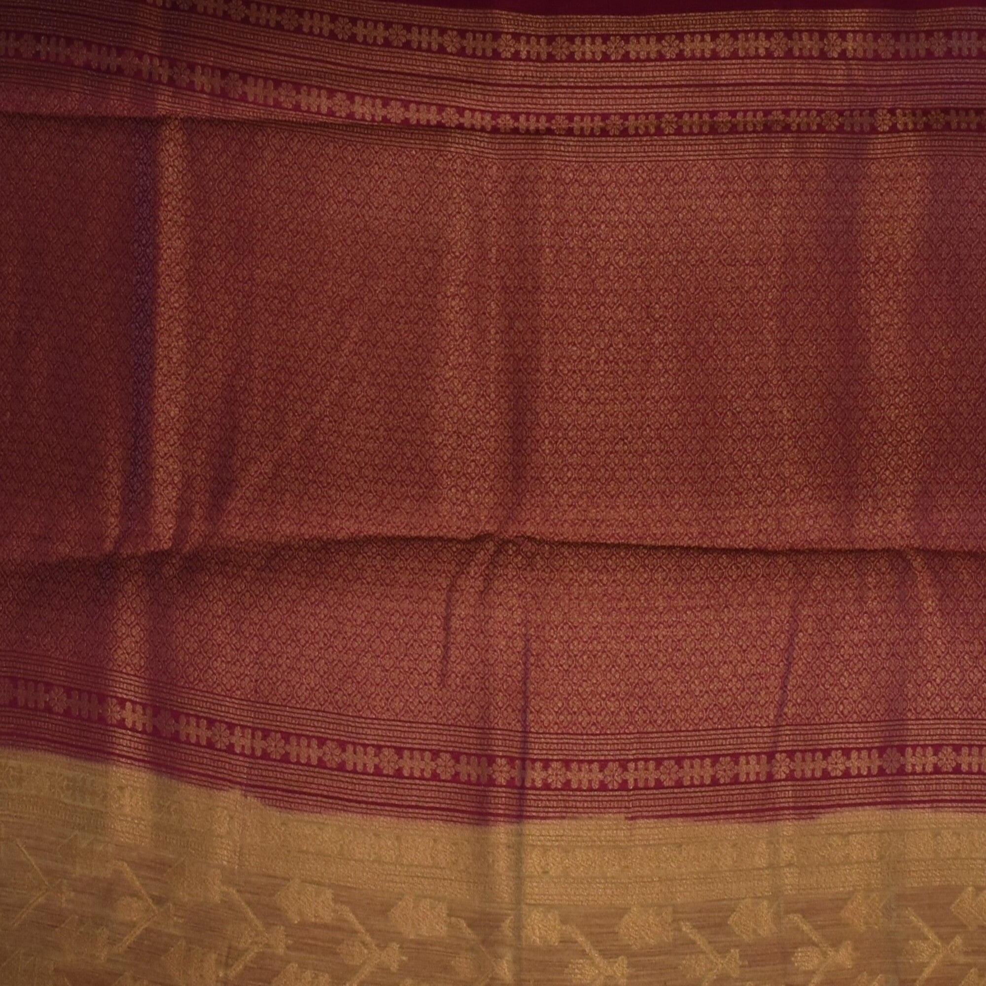 Embrace heritage and elegance with this exquisite benarasi monga silk beige saree with pink boarder jari work, a fine blend of tradition and luxury. woven from pure monga silk - a renowned for its natural golden sheen and rich texture - this saree reflects the timeless artistry of varanasi's master weavers.