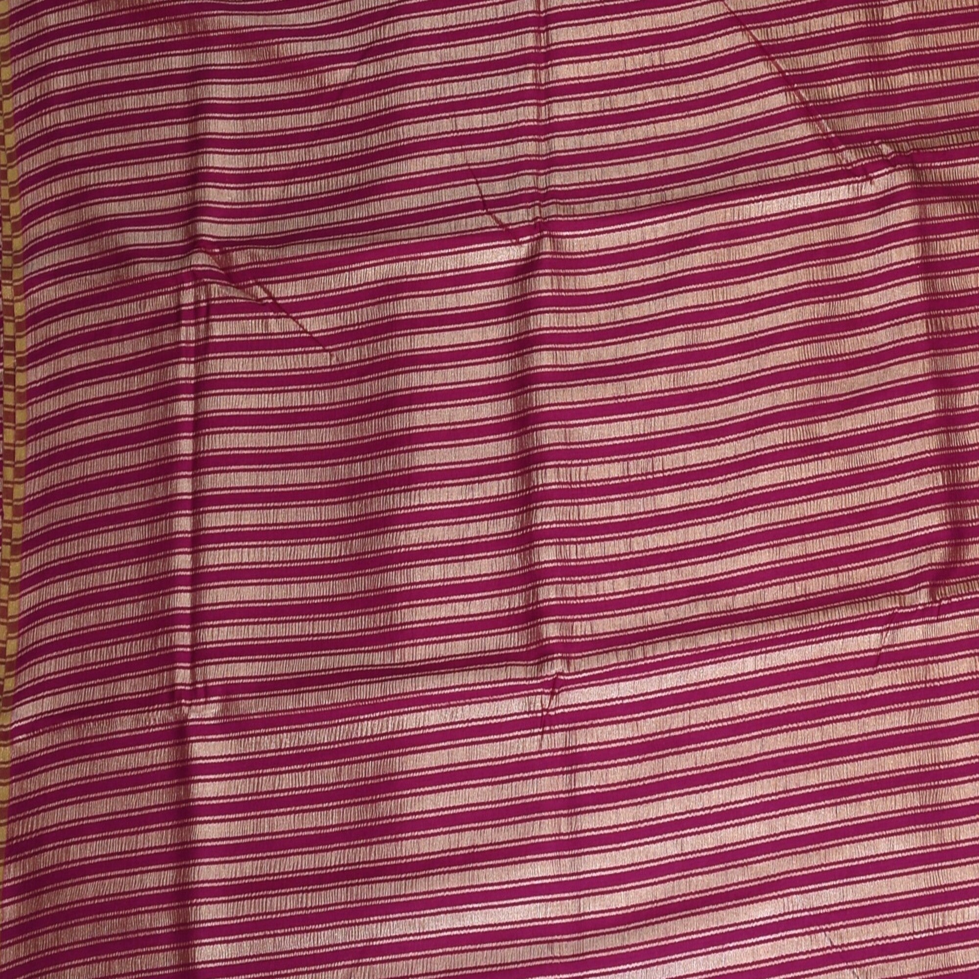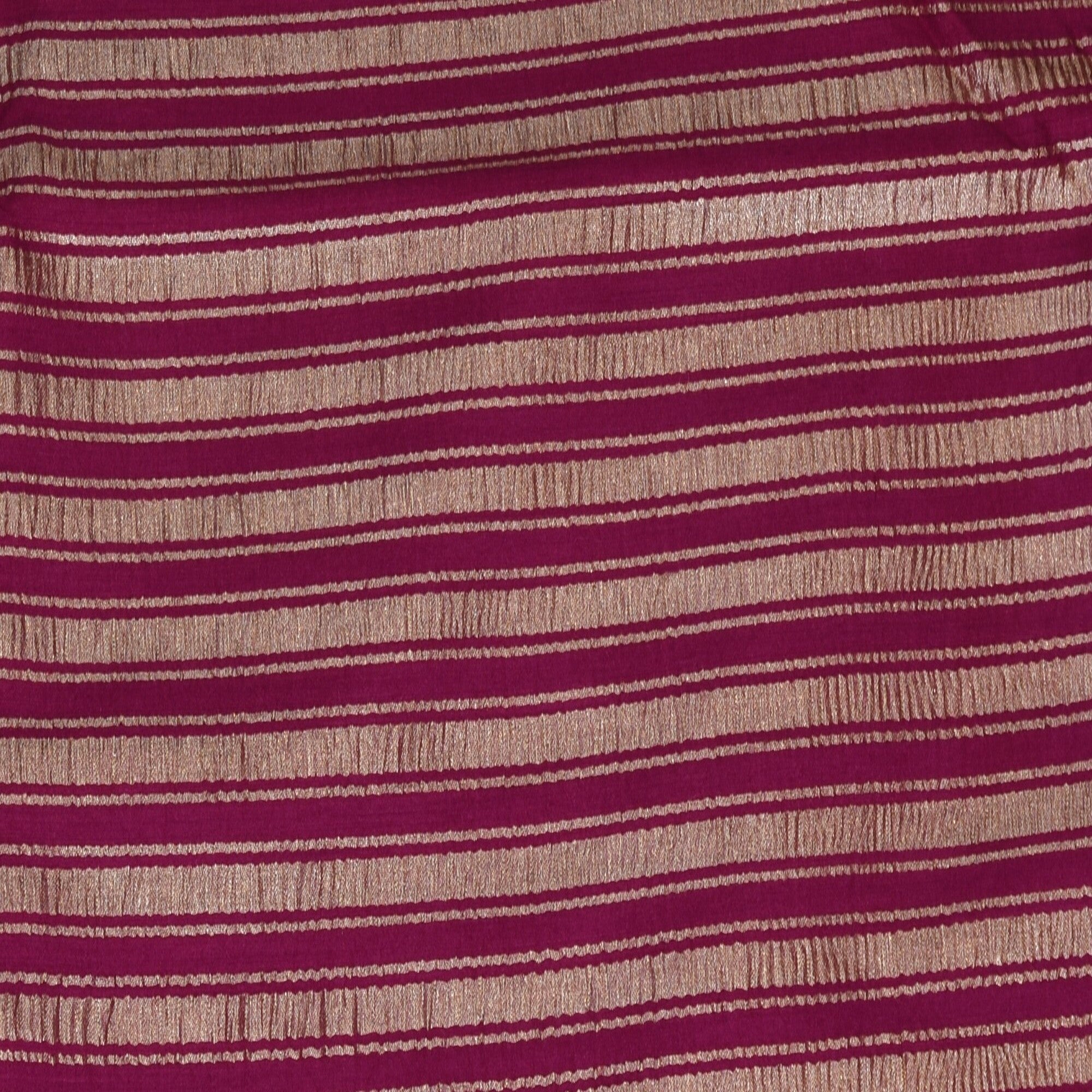 The monga silk deep pink saree with gold jari stripes. Exquisite and timeless, this benarasi crepe silk saree is a perfect blend of traditional artistry and modern eligence, crafted from premium crepe silk, it drapes gracefully, offering a soft, fluid fall that flatters every silhouette. Pair it with a complementing silk blouse and traditional jewellery to complete your royal ethnic look.