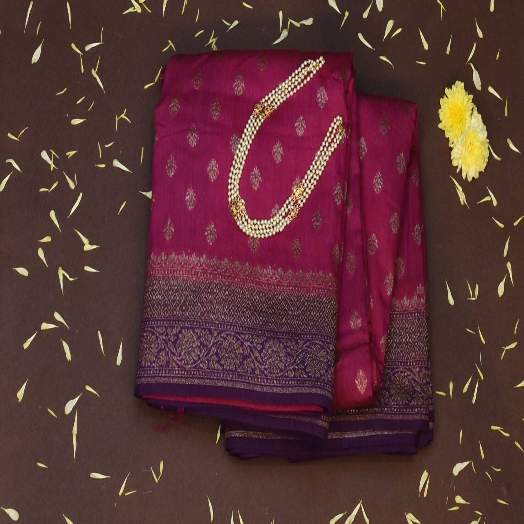 Embrace heritage and elegance with this exquisite benarasi monga silk rani pink saree, a fine blend of tradition and luxury. woven from pure monga silk - a renowned for its natural golden sheen and rich texture - this saree reflects the timeless artistry of varanasi's master weavers.