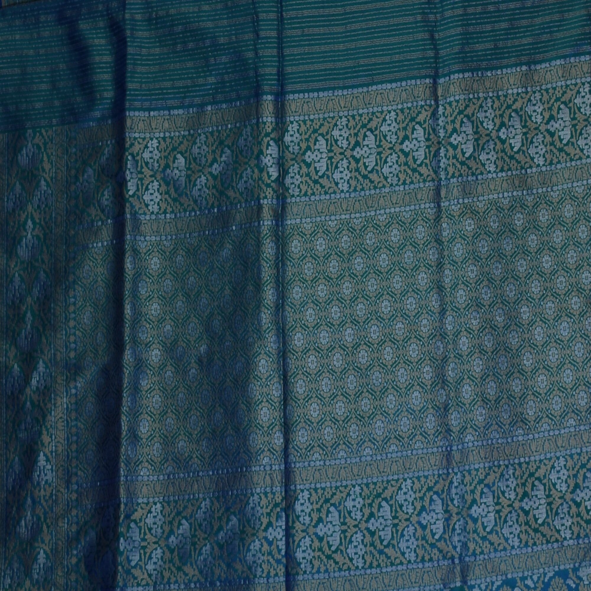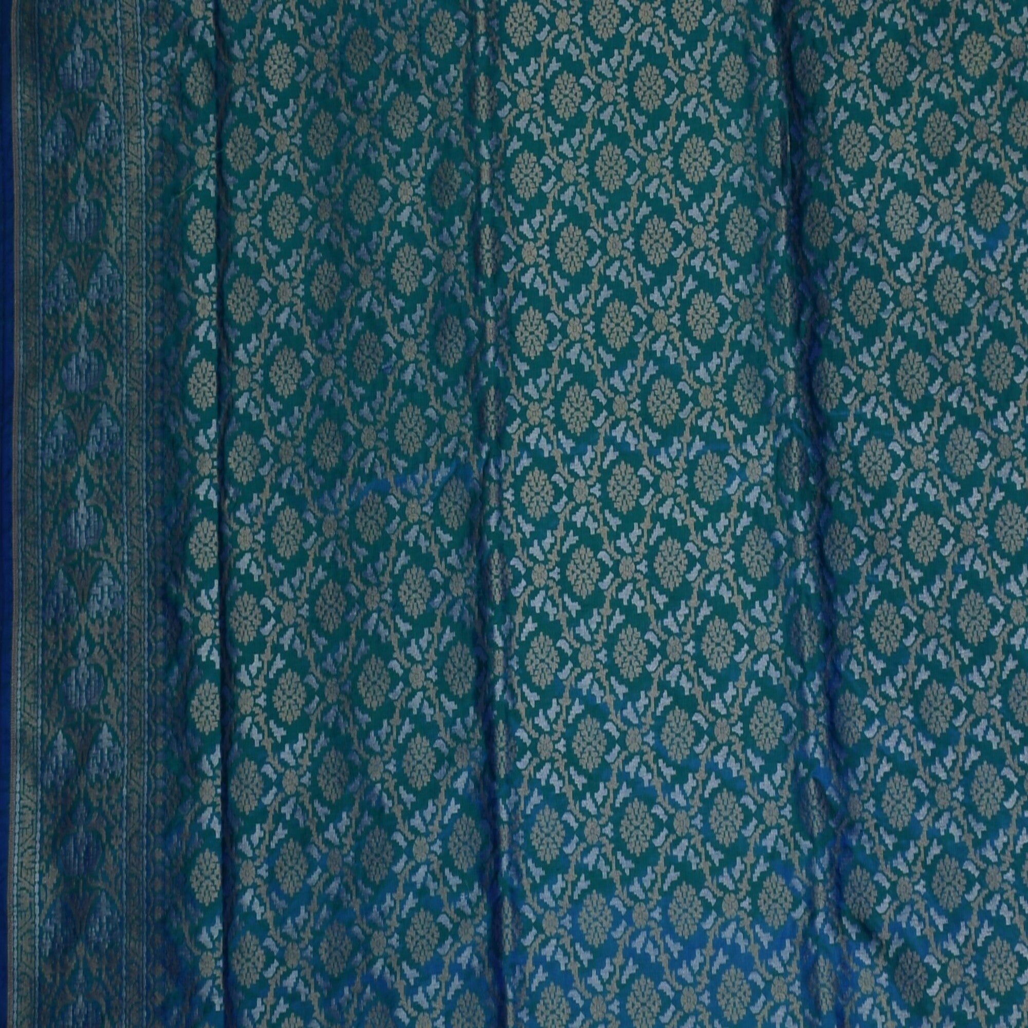 The pure silk turquoise blue saree with jari work. Exquisite and timeless, this benarasi crepe silk saree is a perfect blend of traditional artistry and modern eligence, crafted from premium crepe silk, it drapes gracefully, offering a soft, fluid fall that flatters every silhouette. Pair it with a complementing silk blouse and traditional jewellery to complete your royal ethnic look.