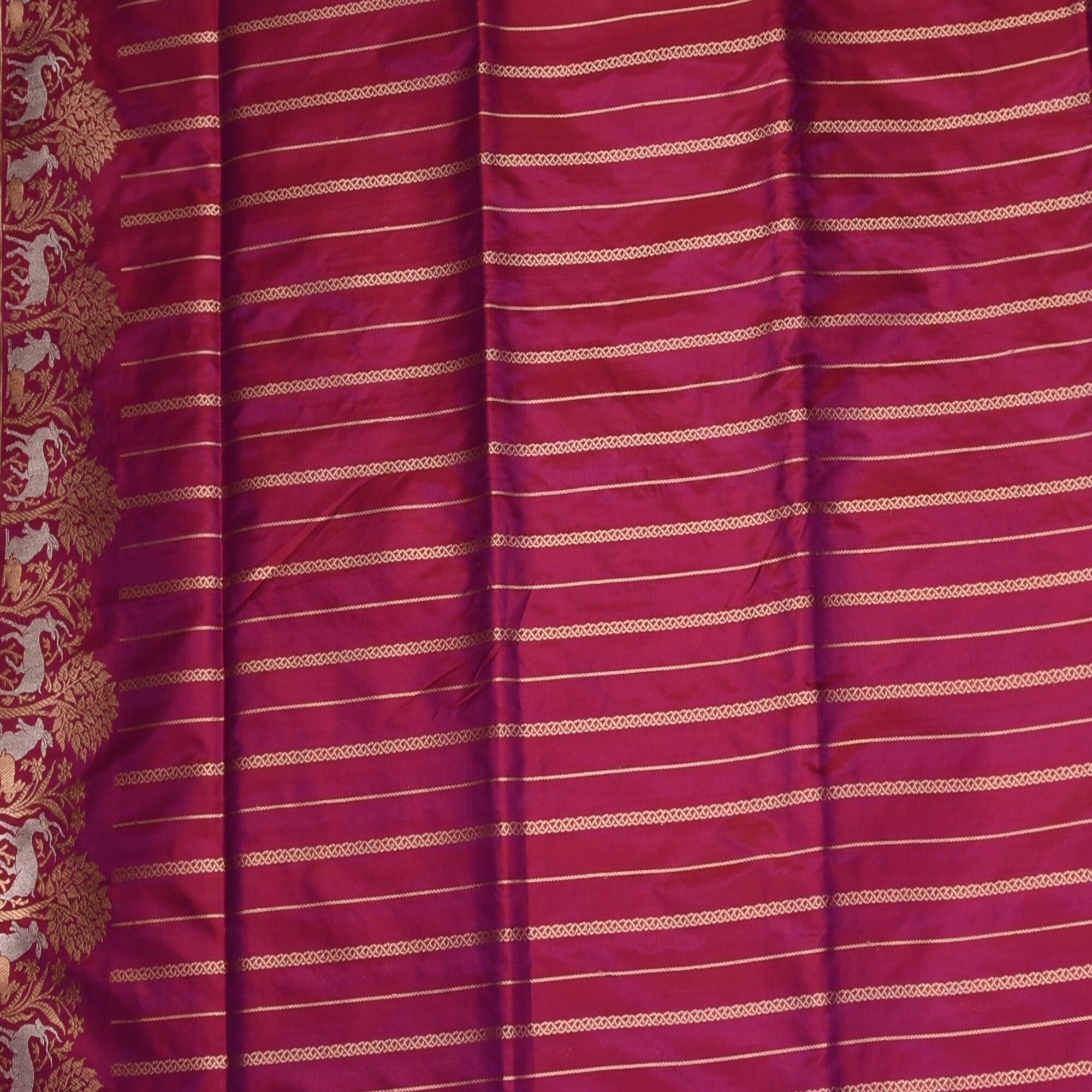 The pure silk violet & pink saree with jari boarder. Exquisite and timeless, this benarasi crepe silk saree is a perfect blend of traditional artistry and modern eligence, crafted from premium crepe silk, it drapes gracefully, offering a soft, fluid fall that flatters every silhouette. Pair it with a complementing silk blouse and traditional jewellery to complete your royal ethnic look.