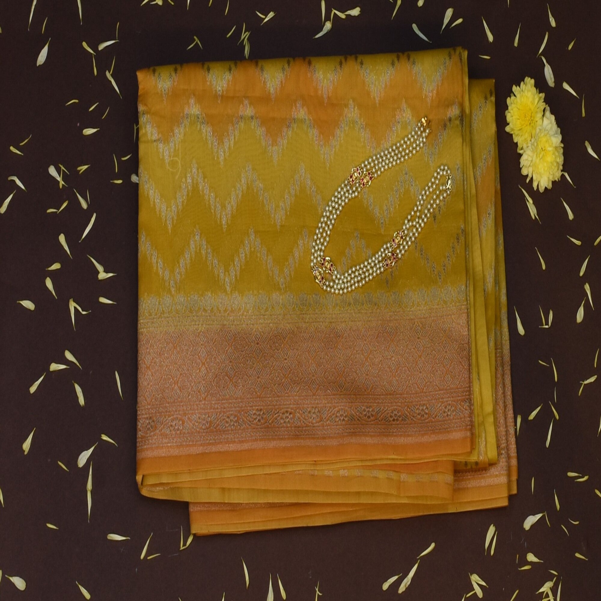 Benarasi rang kart cora cotton mustard yellow mix saree with jari work boarder