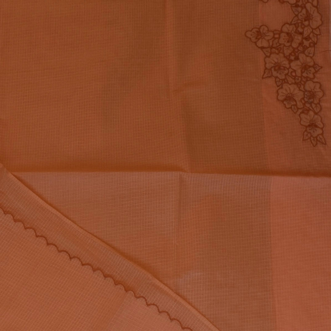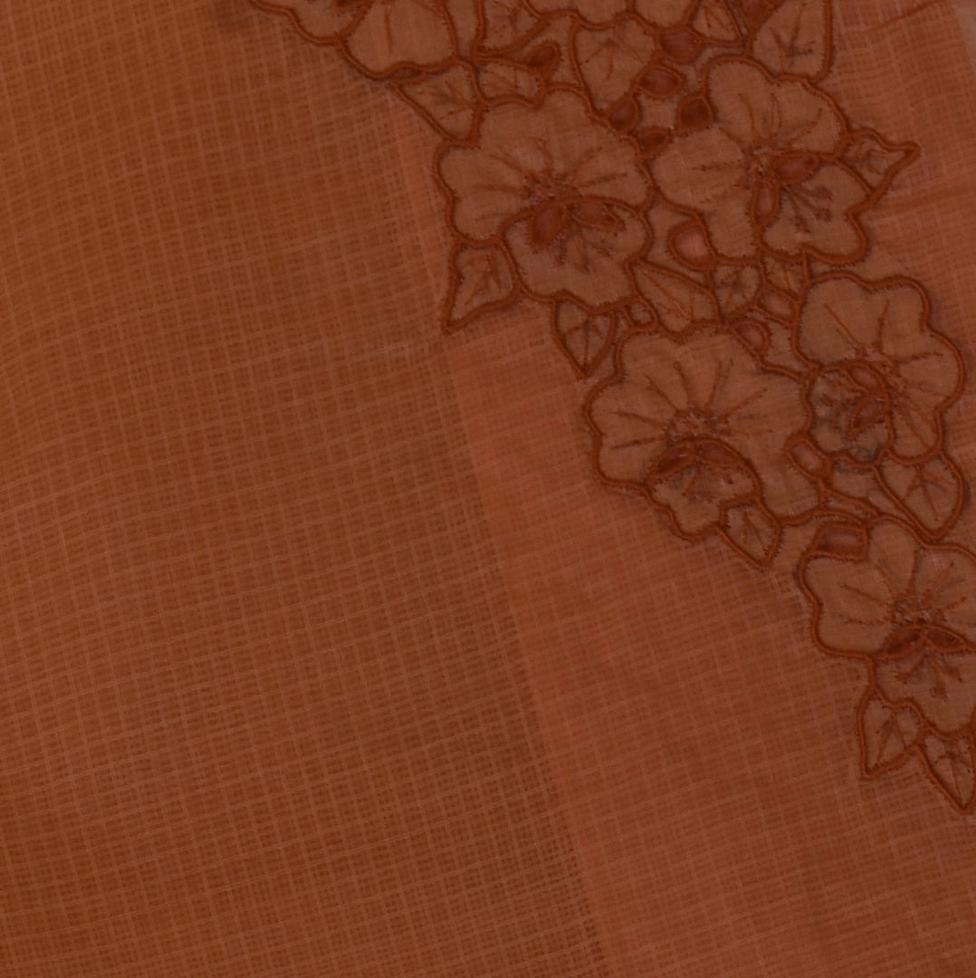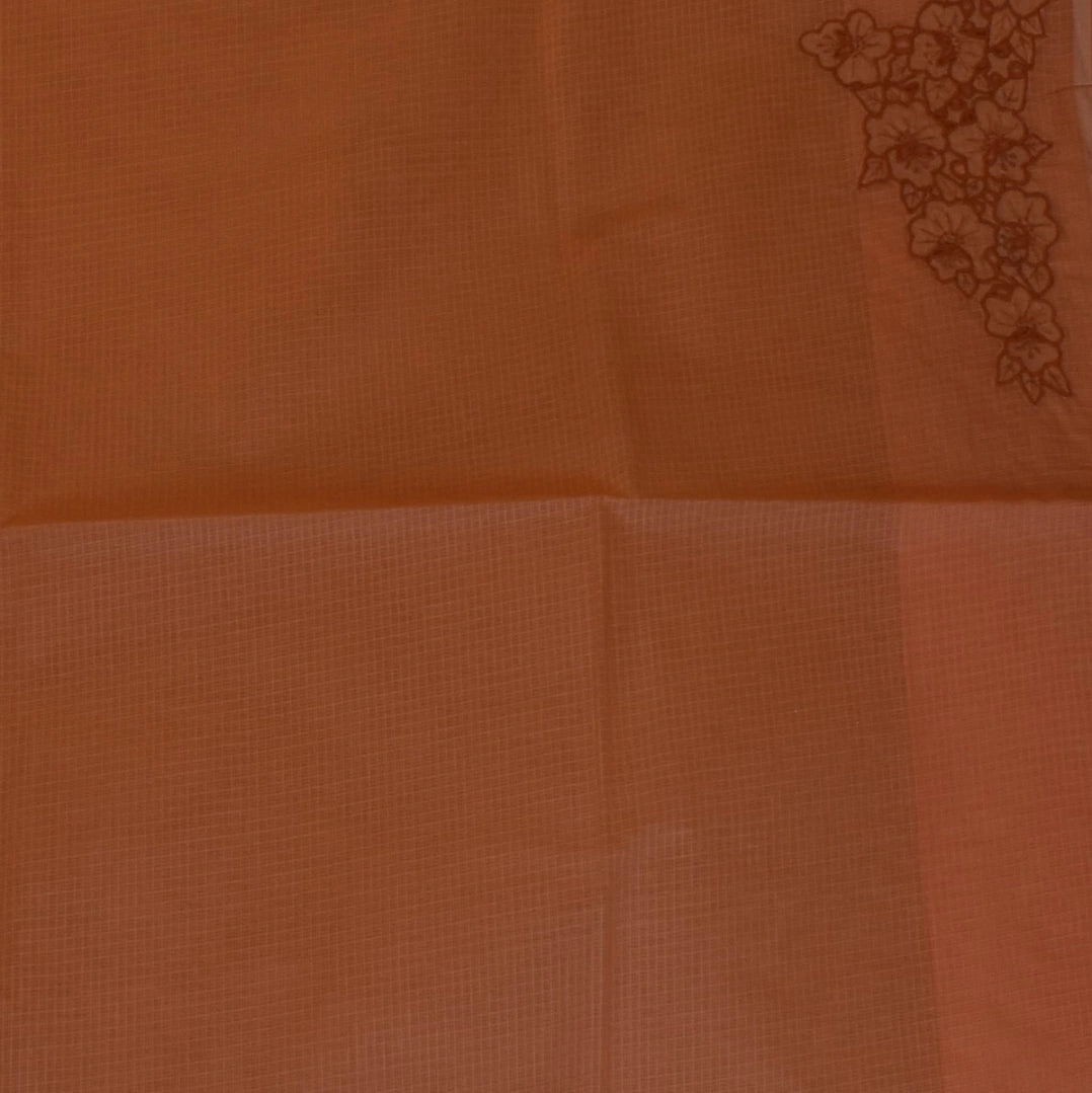 This kota saree in a burnt orange shade features elegant traditional patterns, perfect for graceful appearances and festive flair.