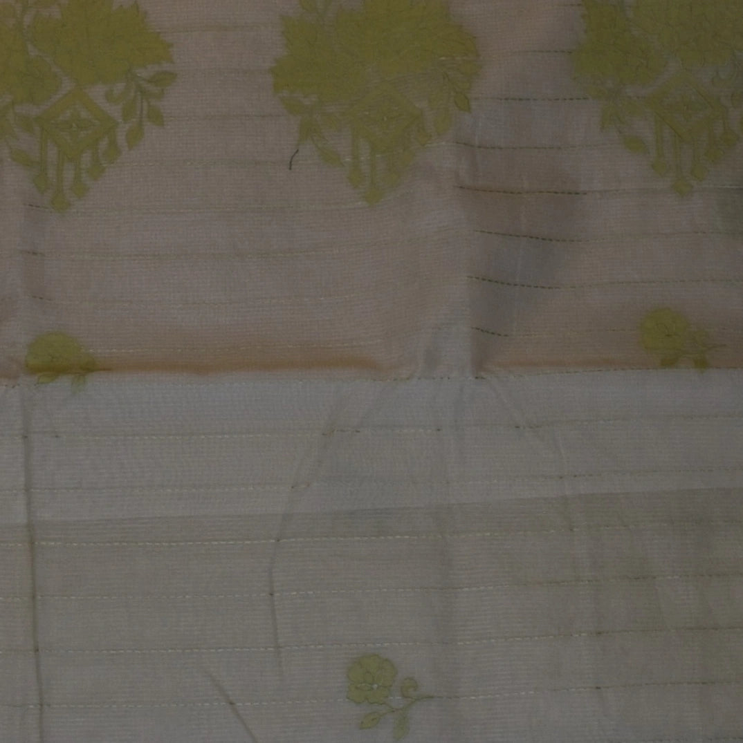 This cotton saree in a Cream with olive drab flower design shade features elegant traditional patterns, perfect for graceful appearances and festive flair.