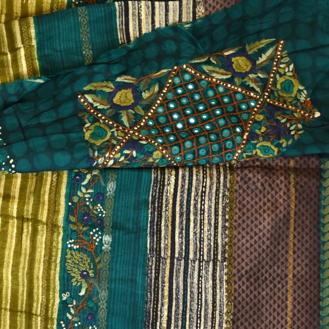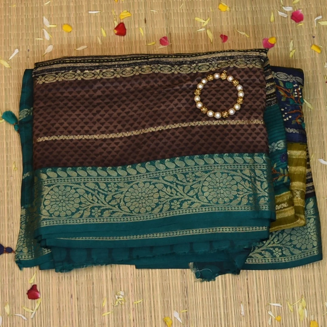 This crepe silk green multi color saree with rama green border is a stunning piece with elegant details that elevate your traditional look. Perfect for celebrations, weddings, or festive wear.