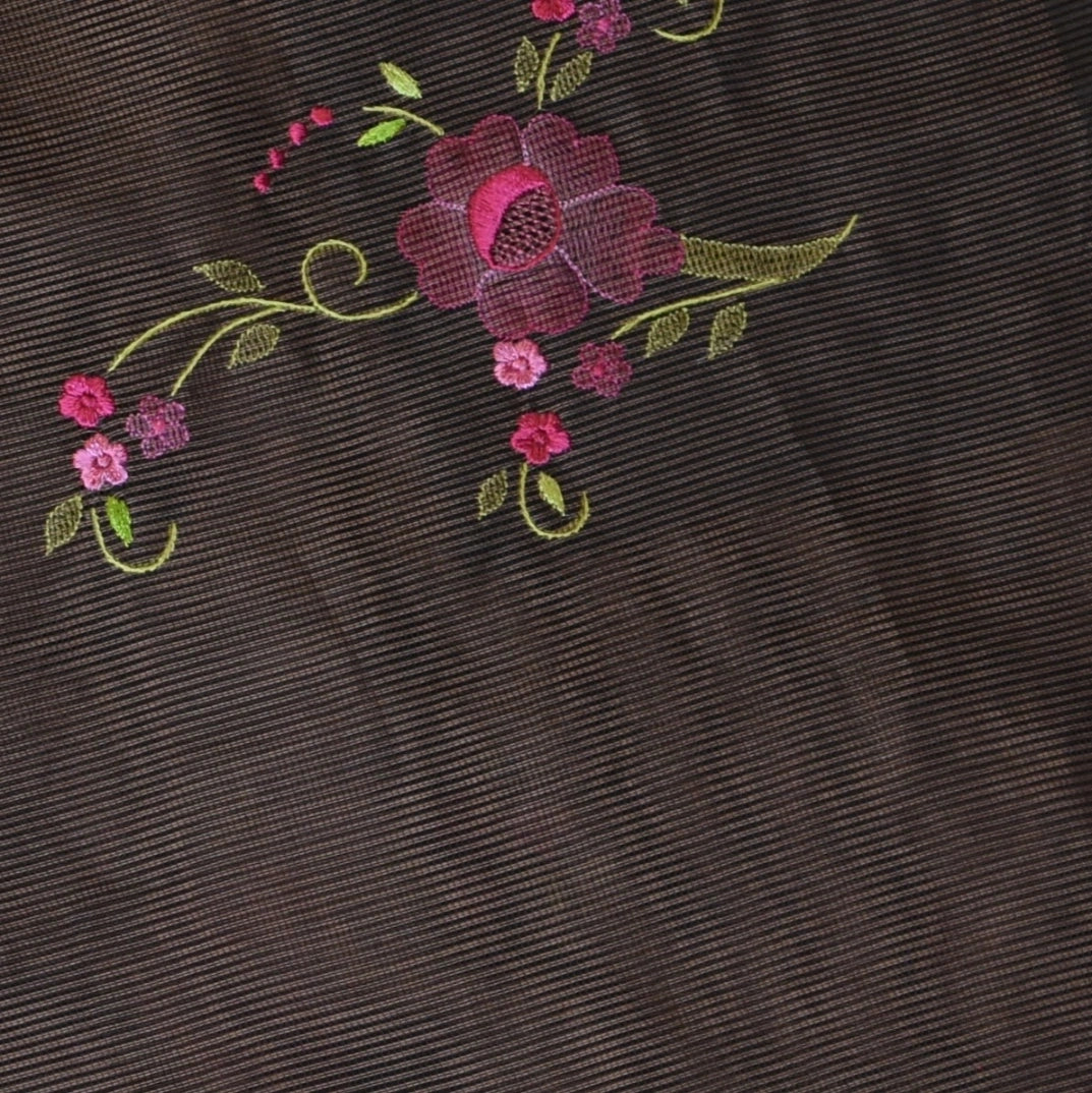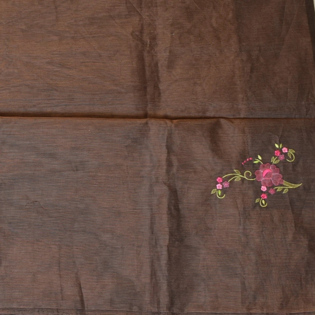 This kota saree in a dark brown shade features elegant traditional patterns, perfect for graceful appearances and festive flair.