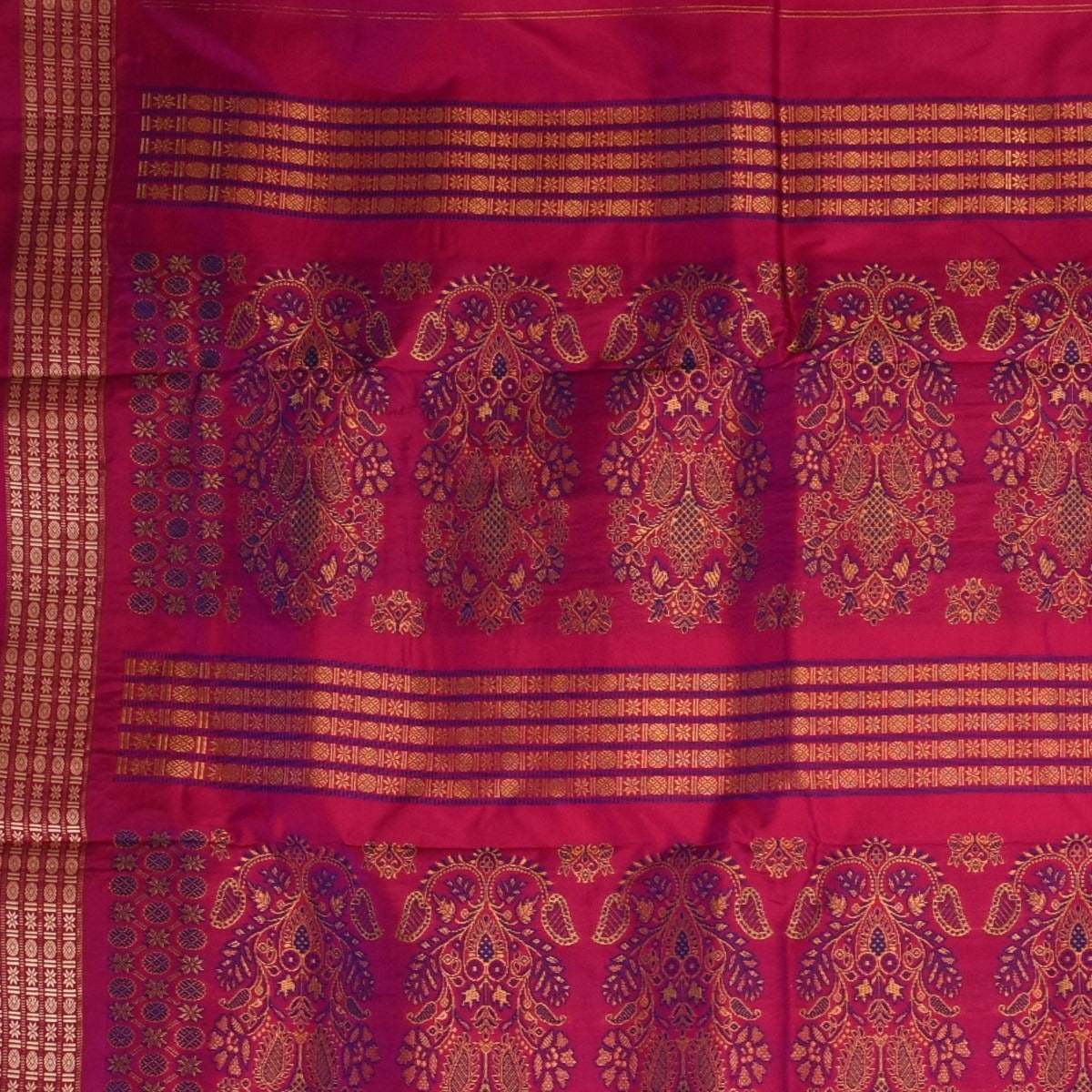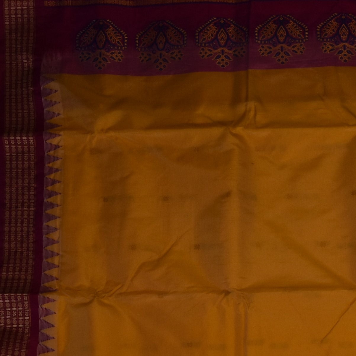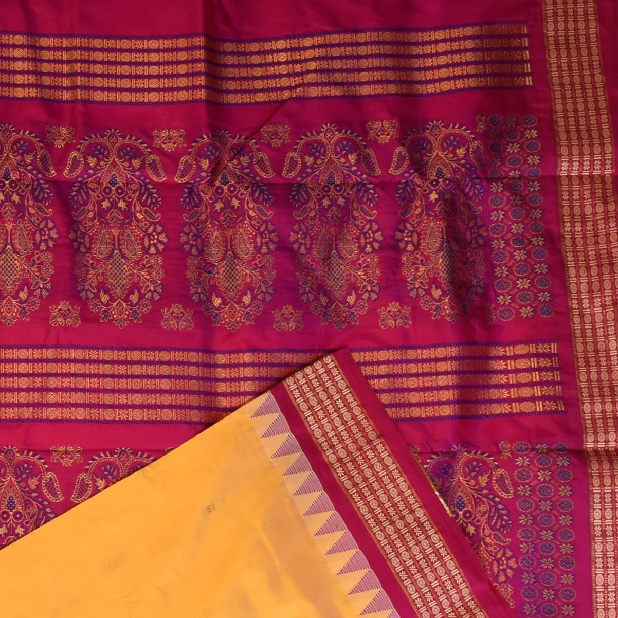 This Gadwal paithani half jari pure silk saree in a burnt orange shade exudes grace and sophistication. Designed with intricate traditional motifs, it is perfect for weddings, festive celebrations, and cultural events.