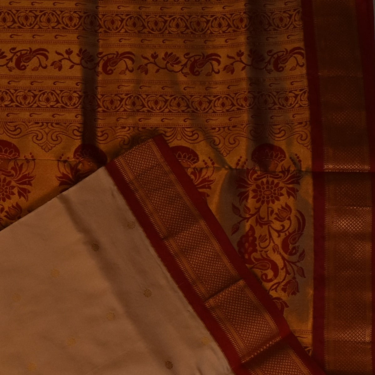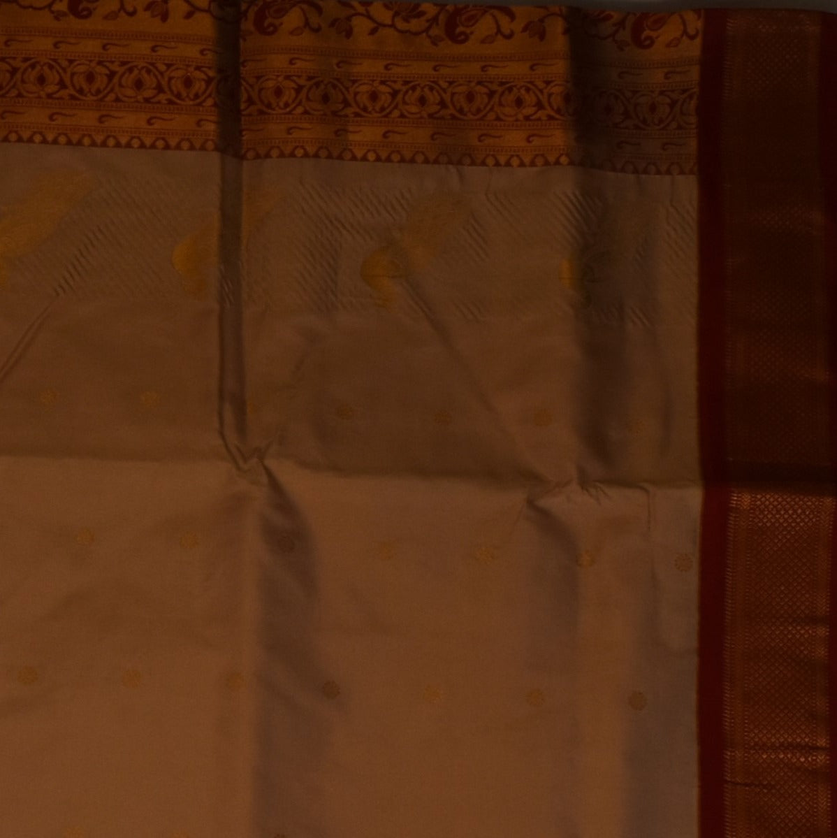 This Gadwal paithani pure silk saree in a warm cream shade exudes grace and sophistication. Designed with intricate traditional motifs, it is perfect for weddings, festive celebrations, and cultural events.