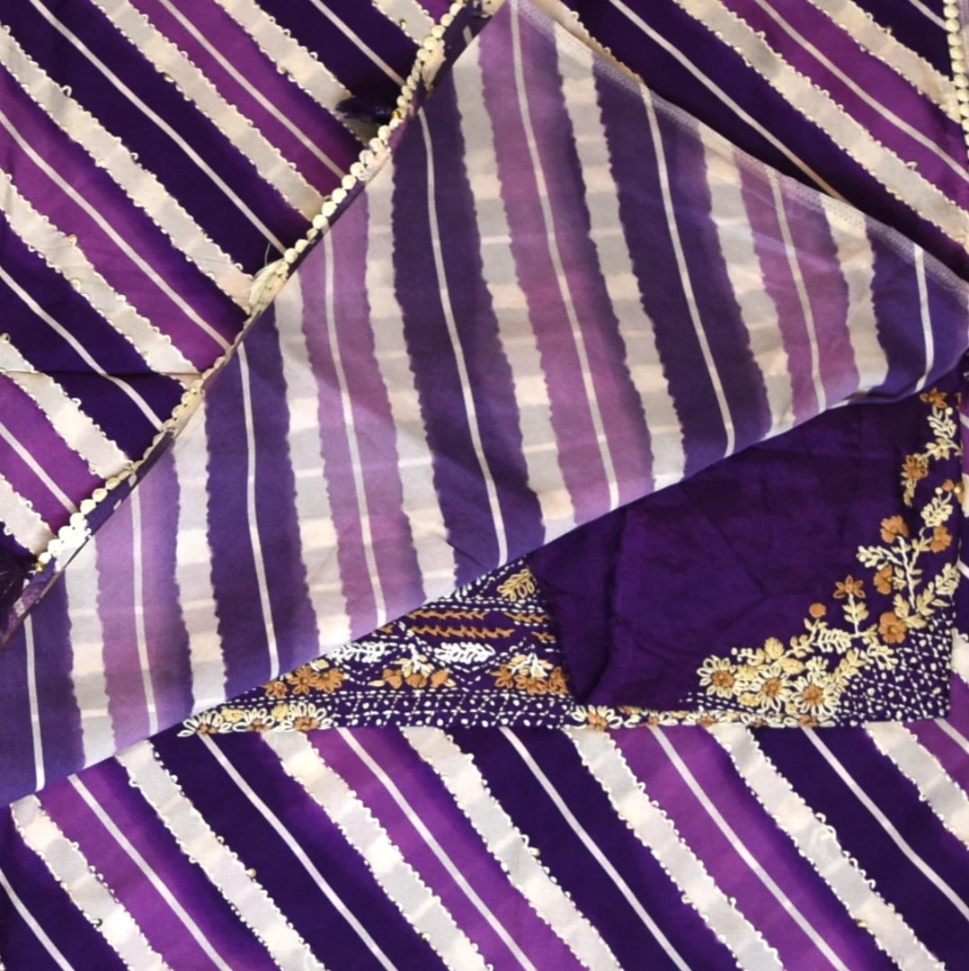 This georgette half white purple saree with blouse is a stunning piece with elegant details that elevate your traditional look. Perfect for celebrations, weddings, or festive wear.