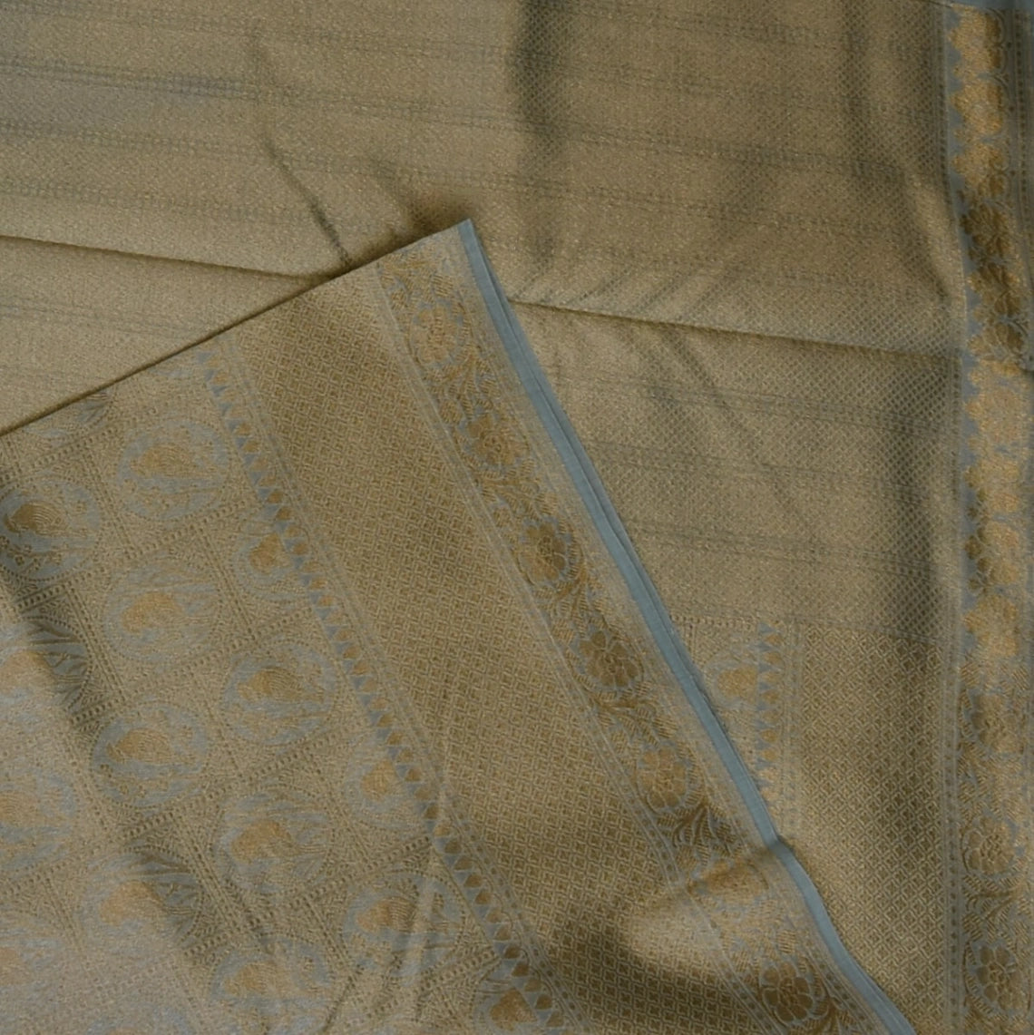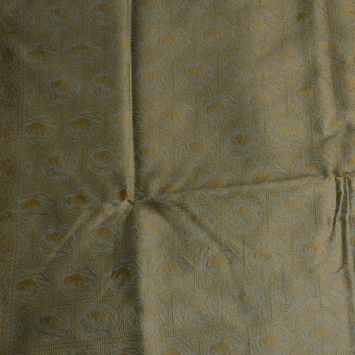 This Benares chanderi silk. honeydew color saree with full zari features an elegant zari border, adding a rich and sophisticated touch. Ideal for festive occasions, traditional events, and celebrations where grace matters.