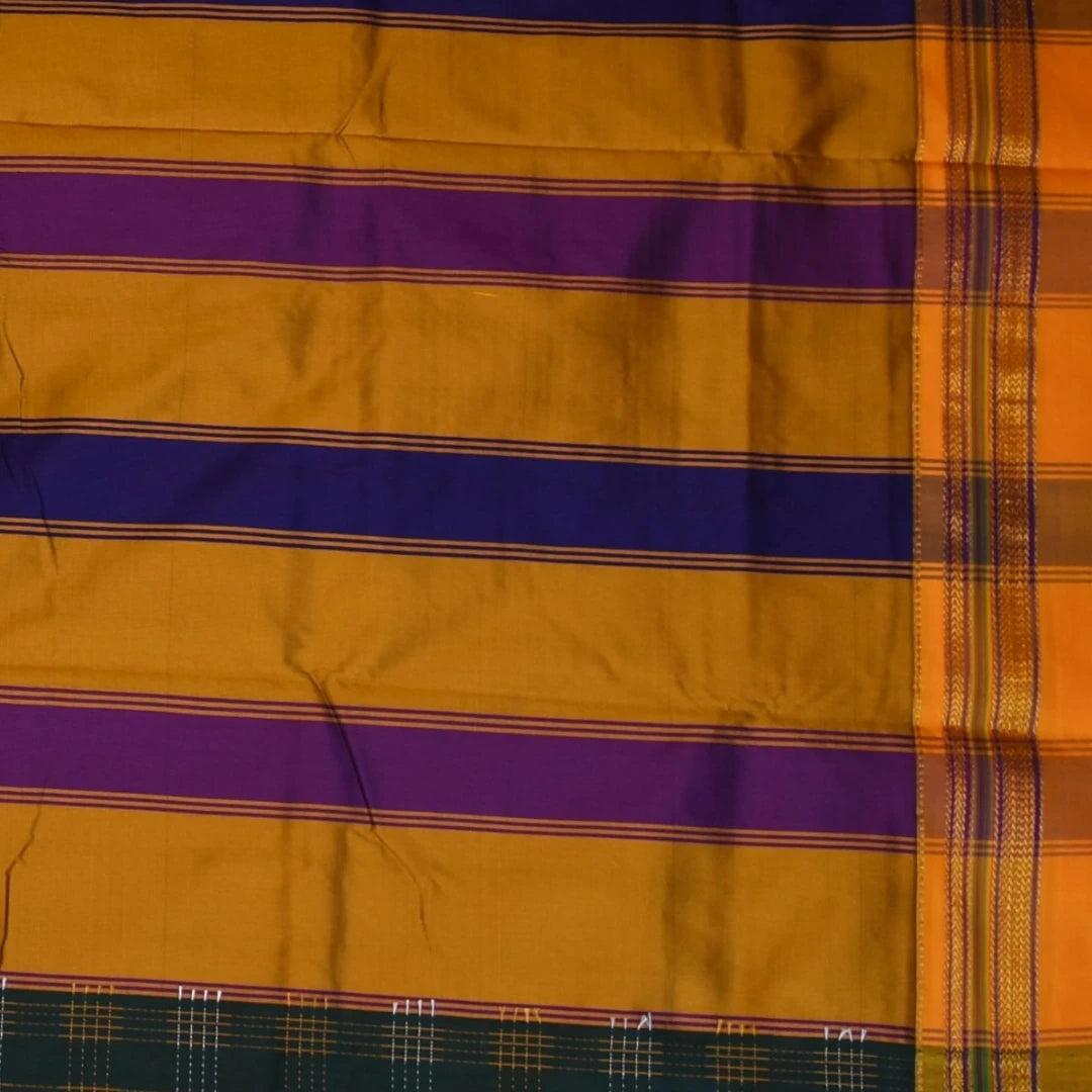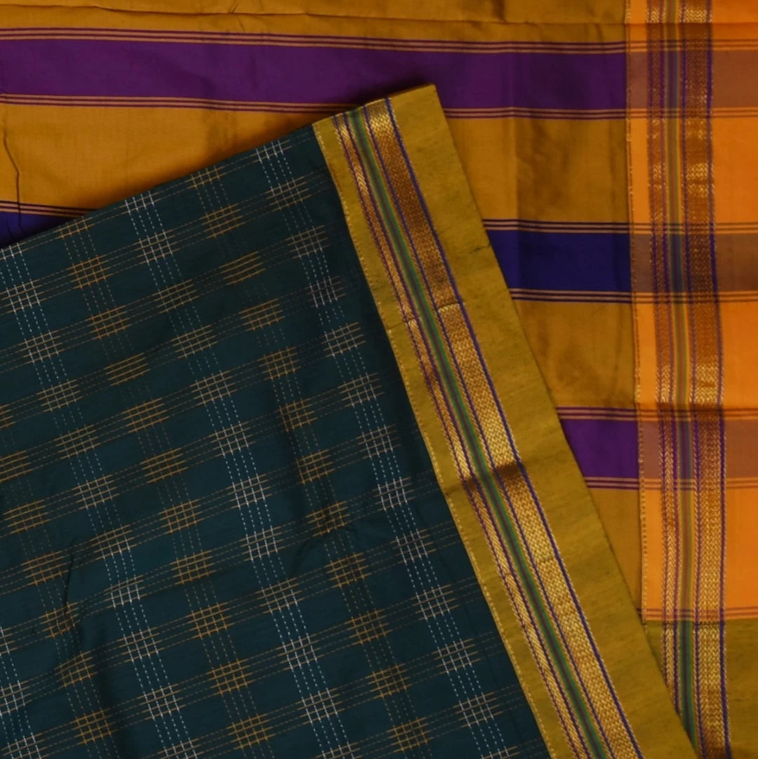 This ilkal cotton silk bottle green saree with mustard border is a stunning piece with elegant details that elevate your traditional look. Perfect for celebrations, weddings, or festive wear.