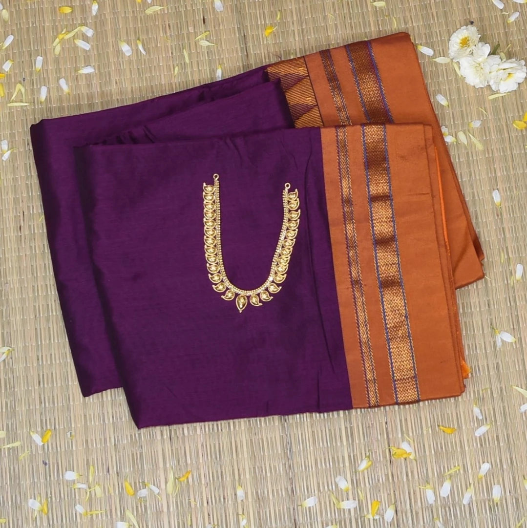 This ilkal cotton silk grape wine saree with yellow border is a stunning piece with elegant details that elevate your traditional look. Perfect for celebrations, weddings, or festive wear.