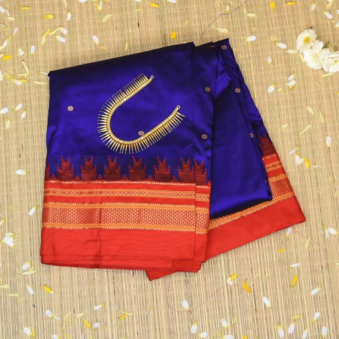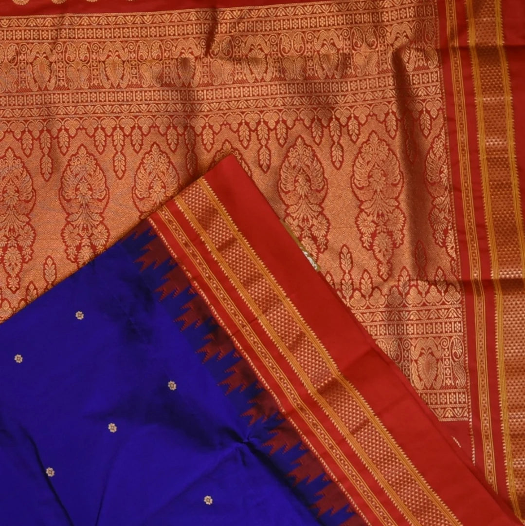 This ilkal gadwal pure silk purple saree with red border is a stunning piece with elegant details that elevate your traditional look. Perfect for celebrations, weddings, or festive wear.