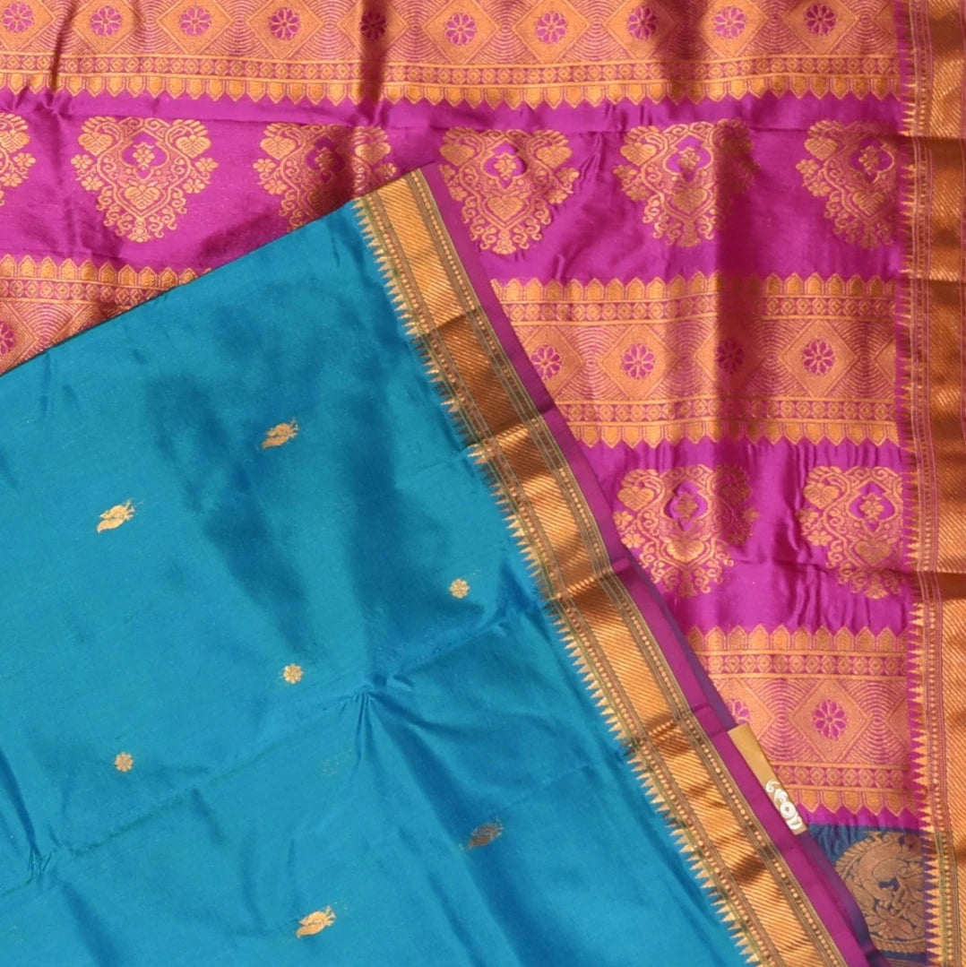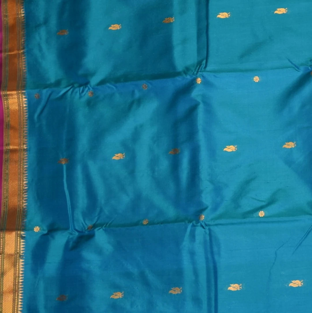 This ilkal pure silk aqua blue saree with zari border is a stunning piece with elegant details that elevate your traditional look. Perfect for celebrations, weddings, or festive wear.