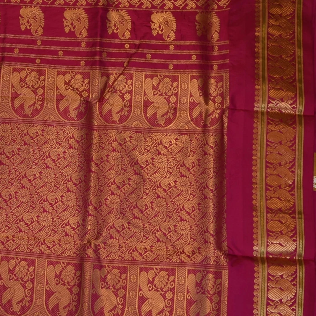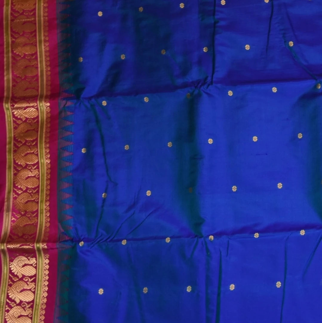 This ilkal pure silk violet saree with pink border is a stunning piece with elegant details that elevate your traditional look. Perfect for celebrations, weddings, or festive wear.