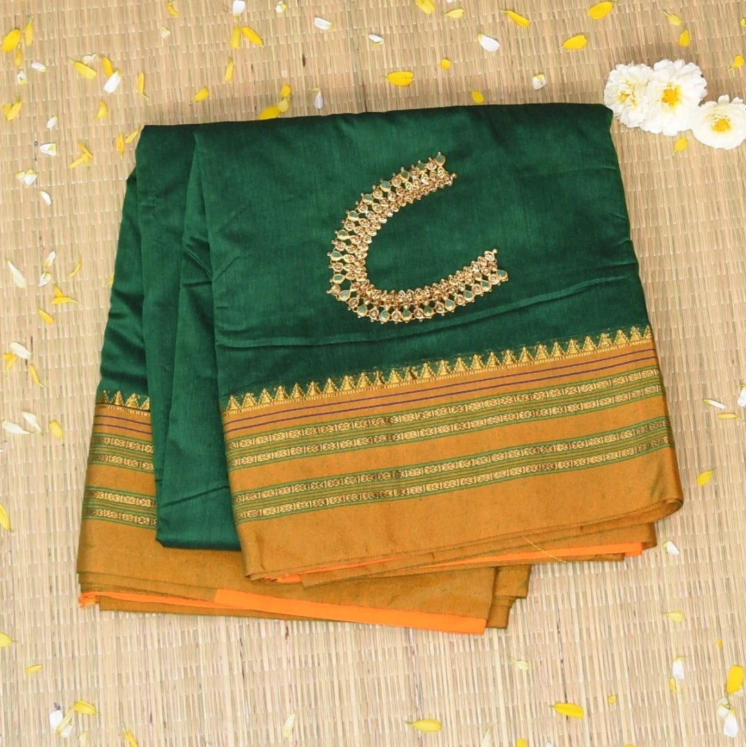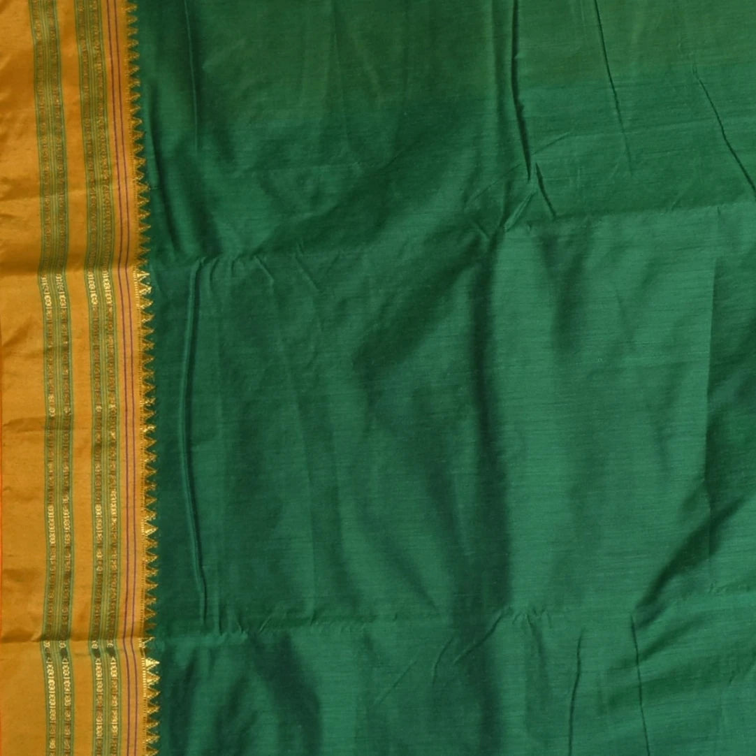 This ilkal silk cotton dark green saree with yellow border is a stunning piece with elegant details that elevate your traditional look. Perfect for celebrations, weddings, or festive wear.