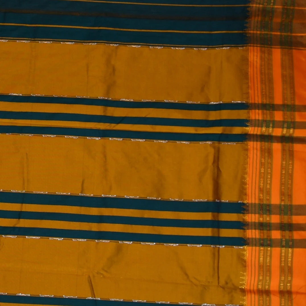 This ilkal silk cotton green saree with mustard border is a stunning piece with elegant details that elevate your traditional look. Perfect for celebrations, weddings, or festive wear.