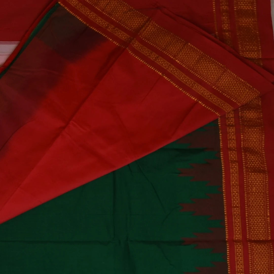 This ilkal silk cotton green saree with red border is a stunning piece with elegant details that elevate your traditional look. Perfect for celebrations, weddings, or festive wear.