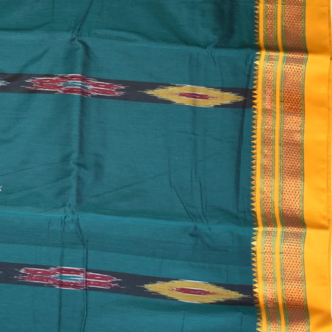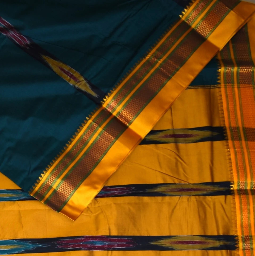 This ilkal silk cotton green saree with yellow order is a stunning piece with elegant details that elevate your traditional look. Perfect for celebrations, weddings, or festive wear.