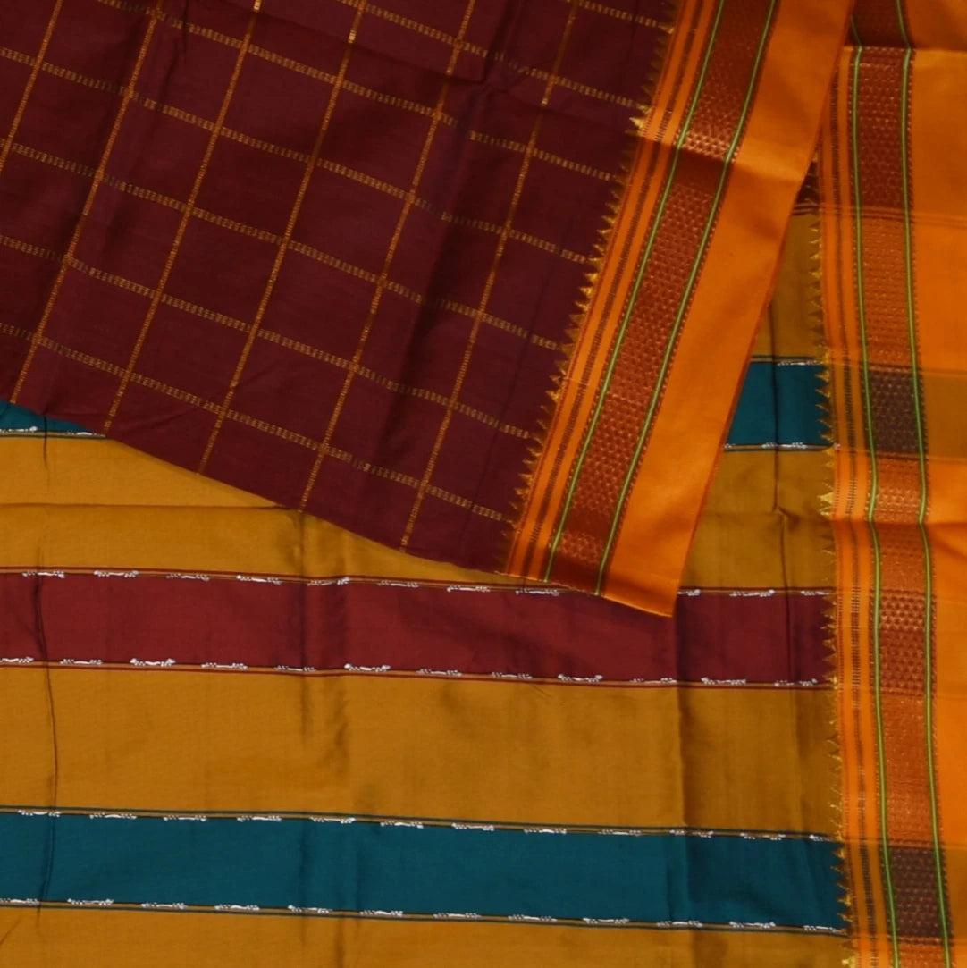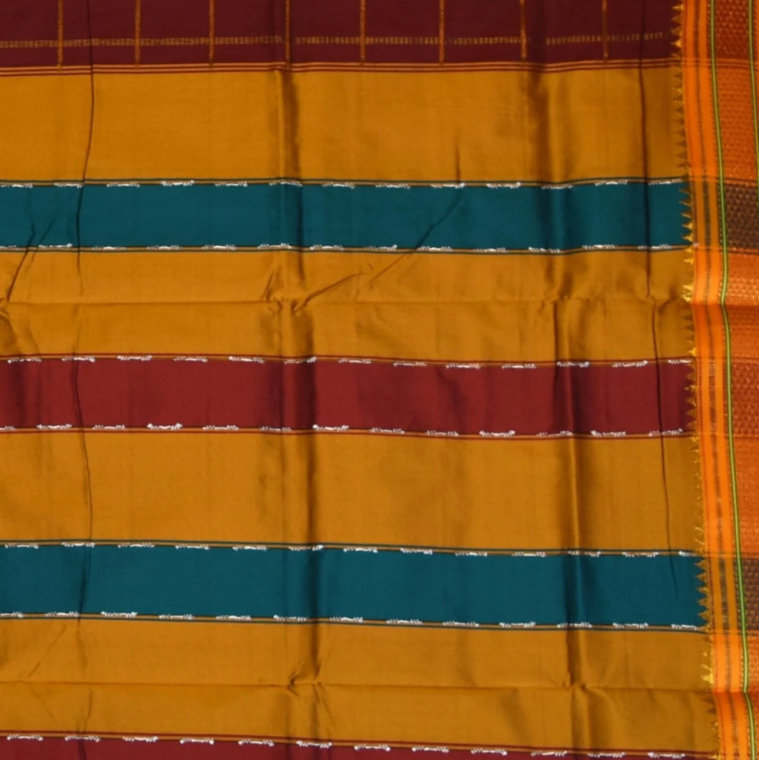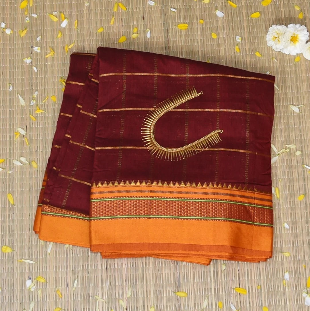 This ilkal silk cotton rust brown saree with yellow border is a stunning piece with elegant details that elevate your traditional look. Perfect for celebrations, weddings, or festive wear.