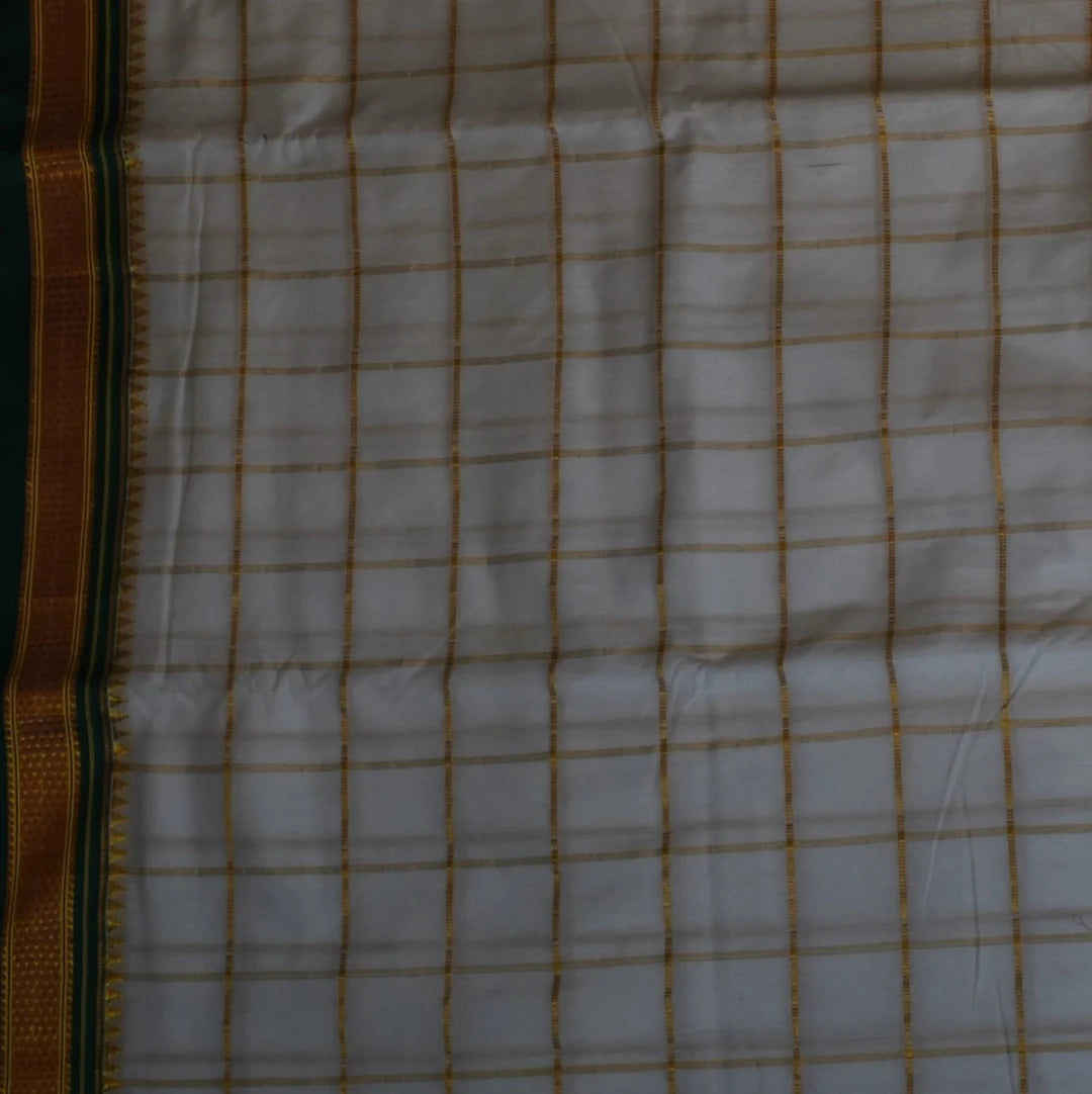 This ilkal silk cotton white saree with green border is a stunning piece with elegant details that elevate your traditional look. Perfect for celebrations, weddings, or festive wear.