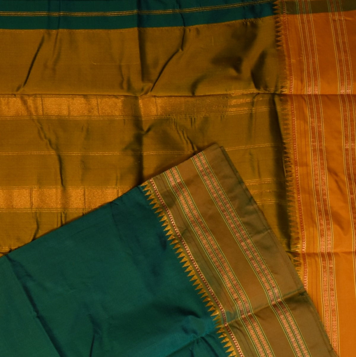This Ilkal Silk saree in a teal green shade exudes grace and sophistication. Designed with intricate traditional motifs, it is perfect for weddings, festive celebrations, and cultural events.