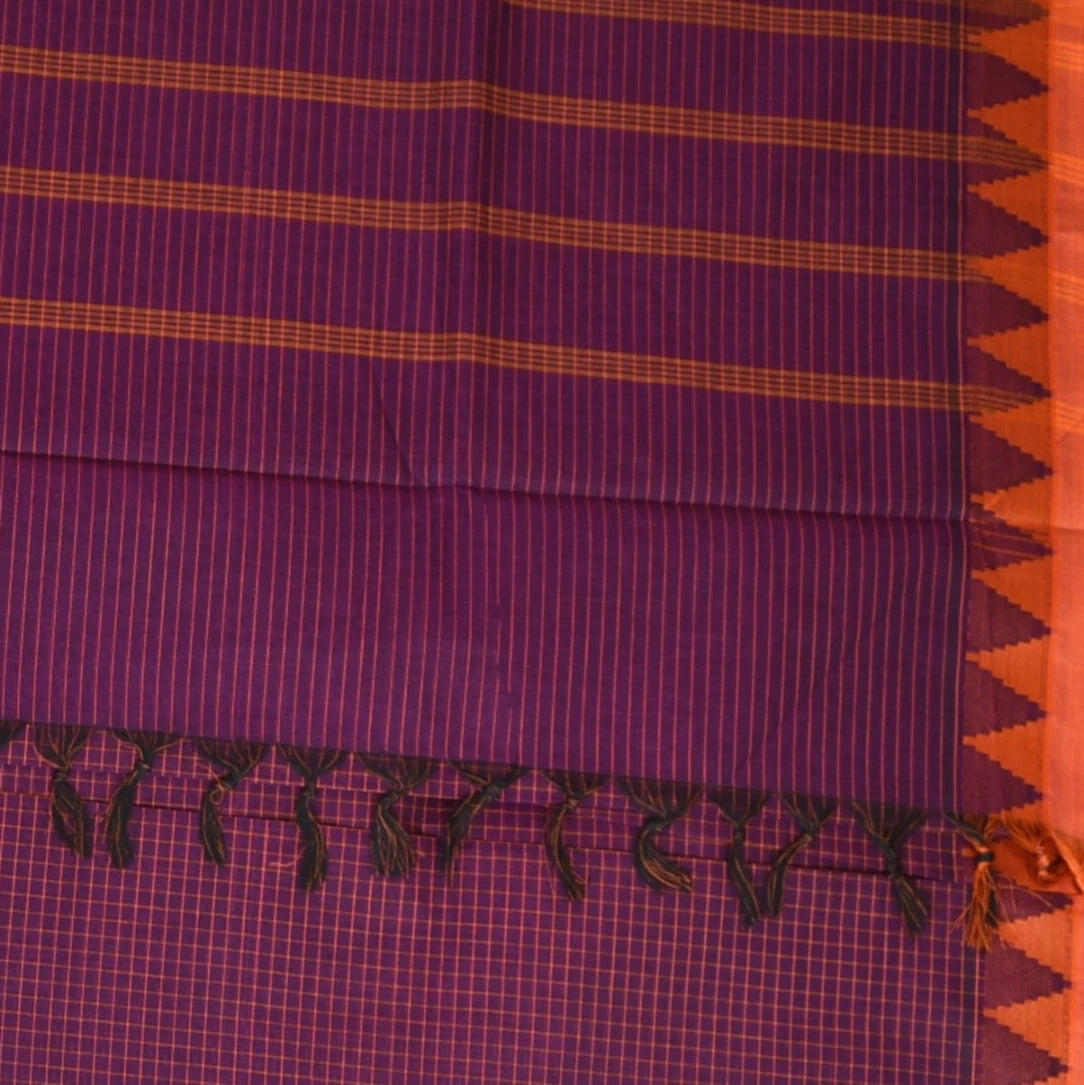 This kanchi cotton grape wine saree with orange thread boarder with blouse is a stunning piece with elegant details that elevate your traditional look. Perfect for celebrations, weddings, or festive wear.