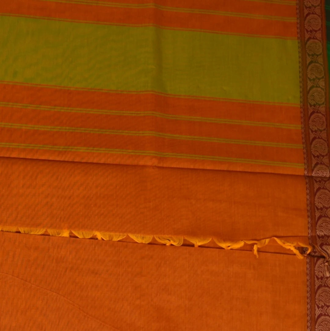 This kanchi cotton orange saree with treadwork border is a stunning piece with elegant details that elevate your traditional look. Perfect for celebrations, weddings, or festive wear.