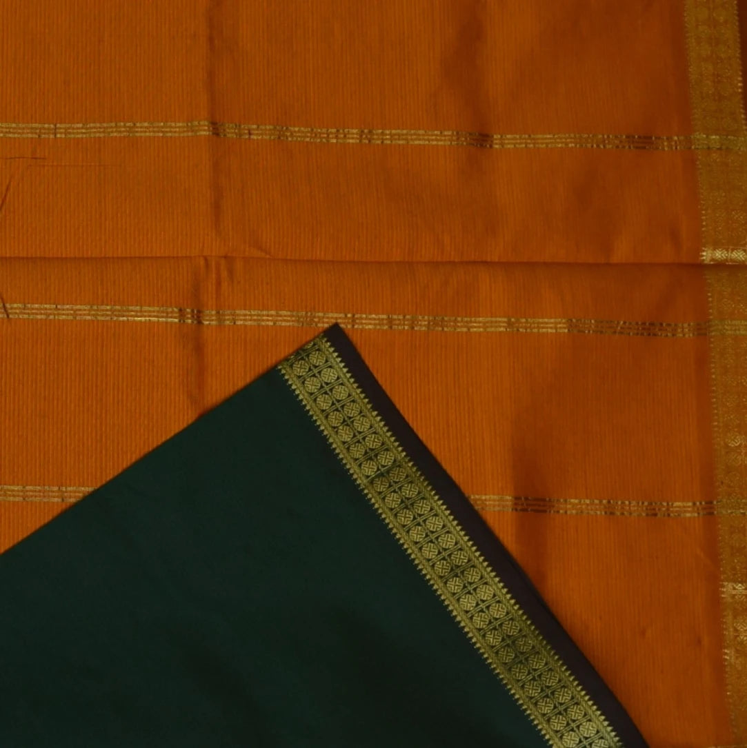 This kanchi semi cotton green saree with zari border is a stunning piece with elegant details that elevate your traditional look. Perfect for celebrations, weddings, or festive wear.