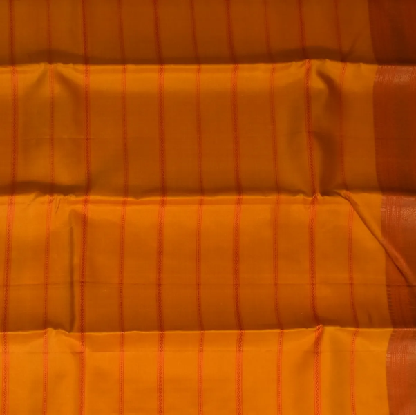 This Kanchipuram silk saree in a bright orange shade is a masterpiece of elegance. Perfectly crafted with intricate traditional patterns, it is ideal for weddings, festive occasions, and grand celebrations.