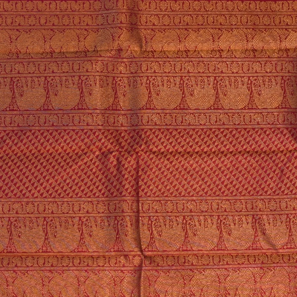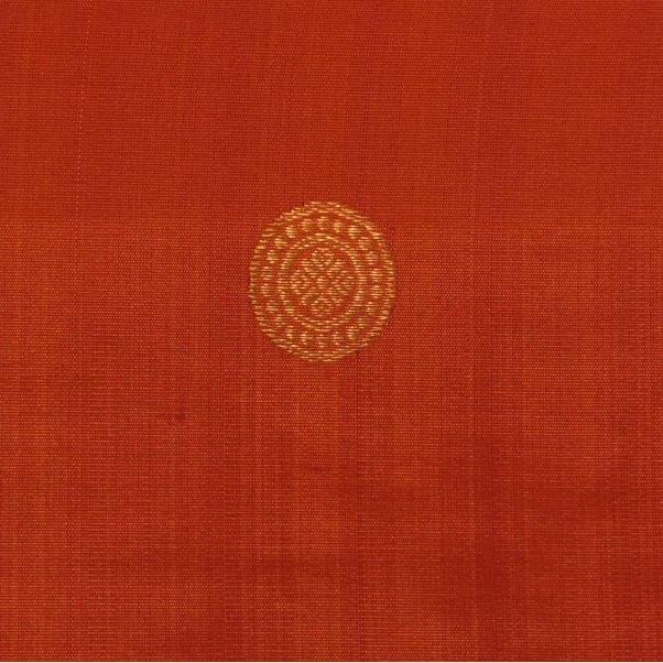 This Kanchipuram silk saree in a burnt orange shade is a masterpiece of elegance. Perfectly crafted with intricate traditional patterns, it is ideal for weddings, festive occasions, and grand celebrations.