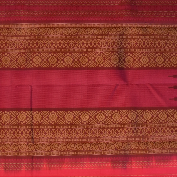 This Kanchipuram silk saree in a crimson red shade is a masterpiece of elegance. Perfectly crafted with intricate traditional patterns, it is ideal for weddings, festive occasions, and grand celebrations.