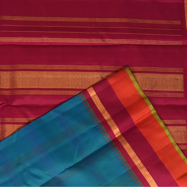 This Kanchipuram silk saree in a deep blue shade is a masterpiece of elegance. Perfectly crafted with intricate traditional patterns, it is ideal for weddings, festive occasions, and grand celebrations.